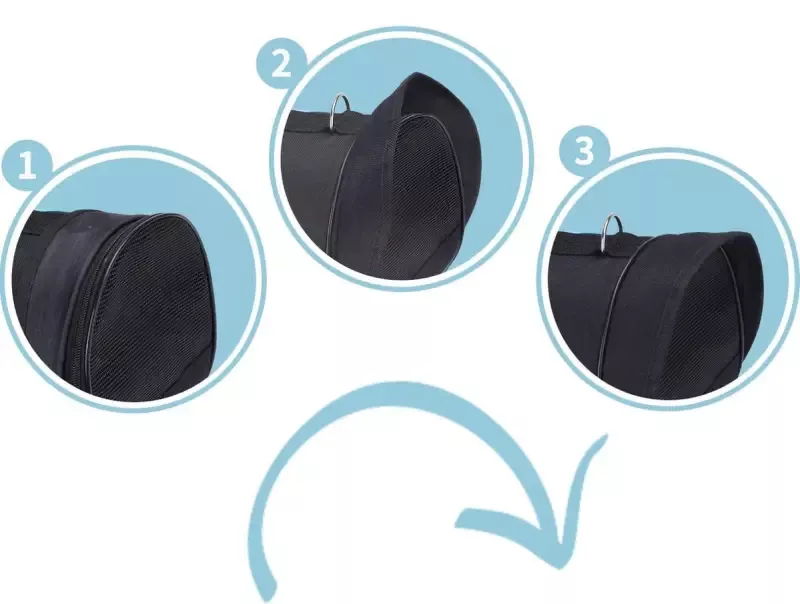 - Klamra wewnątrz torby umożliwia zapięcie obroży zwierzęcia aby nie uciekło w skutek paniki. Jest to przydatne gdy chcemy otworzyć torbę i podać karmę, napój czy pogłaskać etc... ale istnieje ryzyko że nasz pupil ze strachu czy ciekawości gdzieś nam ucieknie.