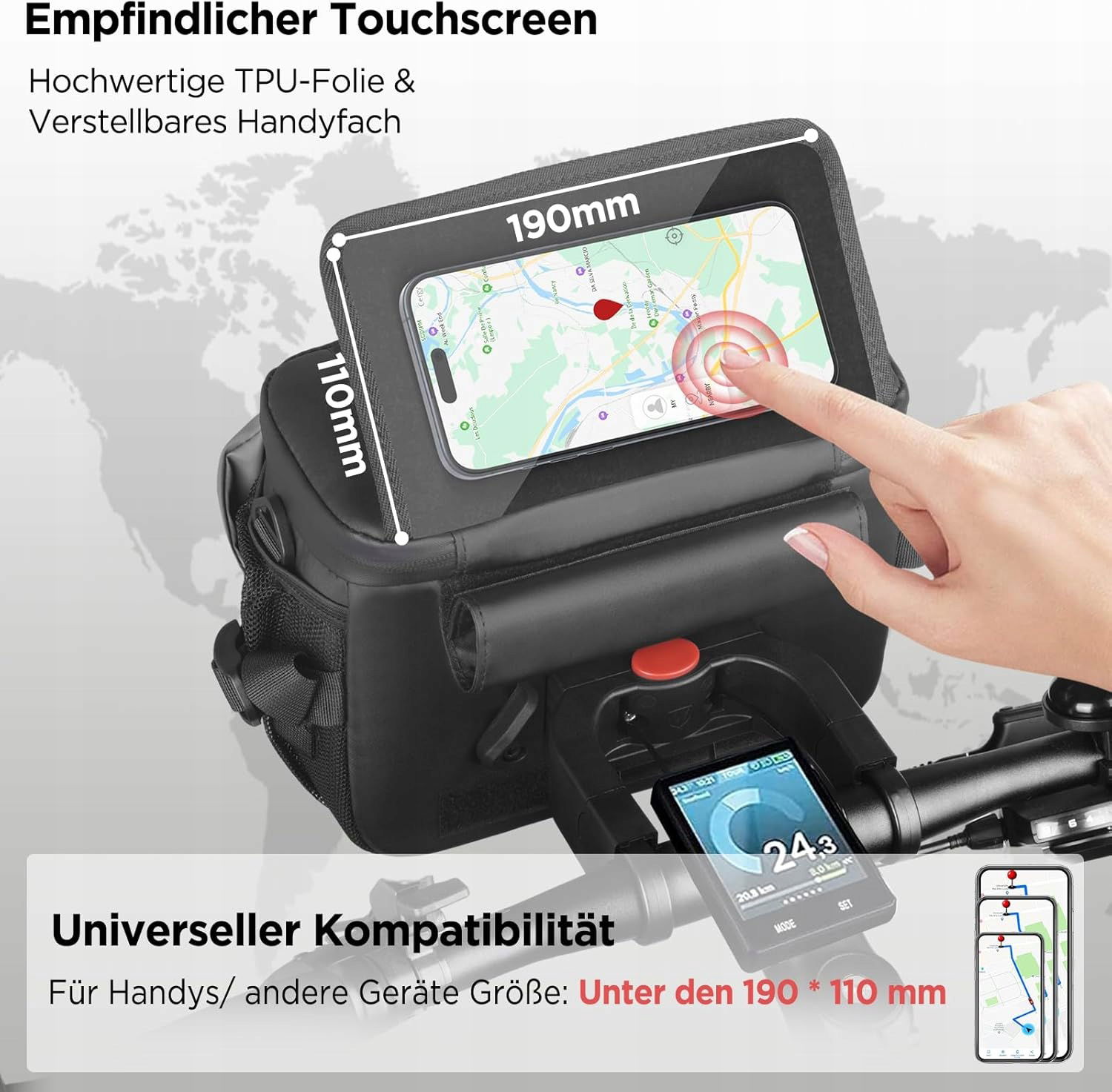 Dzięki regulowanemu ekranowi dotykowemu masz zawsze dostęp do swoich urządzeń. Wykonana z wodoszczelnych materiałów, chroni zawartość podczas deszczu.