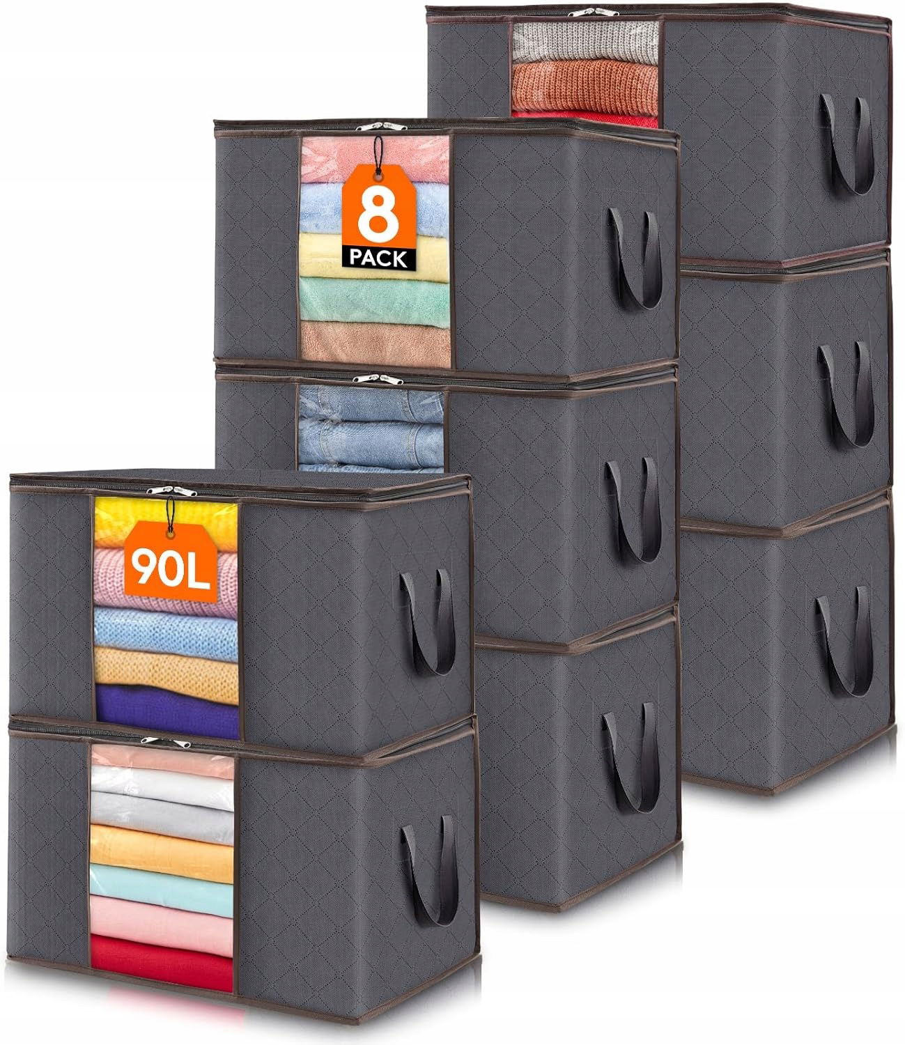 Duża Pojemność: Każda wygodna torba do przechowywania ma wymiary 23,6 cala (60 cm) x 16,9 cala (43 cm) x 13,7 cala (35 cm) i ma pojemność 90 litrów. Pomieści kołdry, koce, poduszki, pluszowe zabawki, kurtki lub inne ubrania.