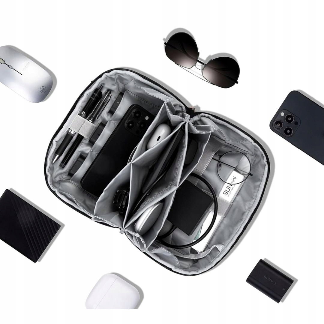 - Zastosowanie: organizer służy do przechowywania i transportu akcesoriów elektronicznych w uporządkowany sposób, ułatwia szybkie odnalezienie potrzebnych urządzeń i chroni je przed uszkodzeniem oraz splątaniem przewodów.