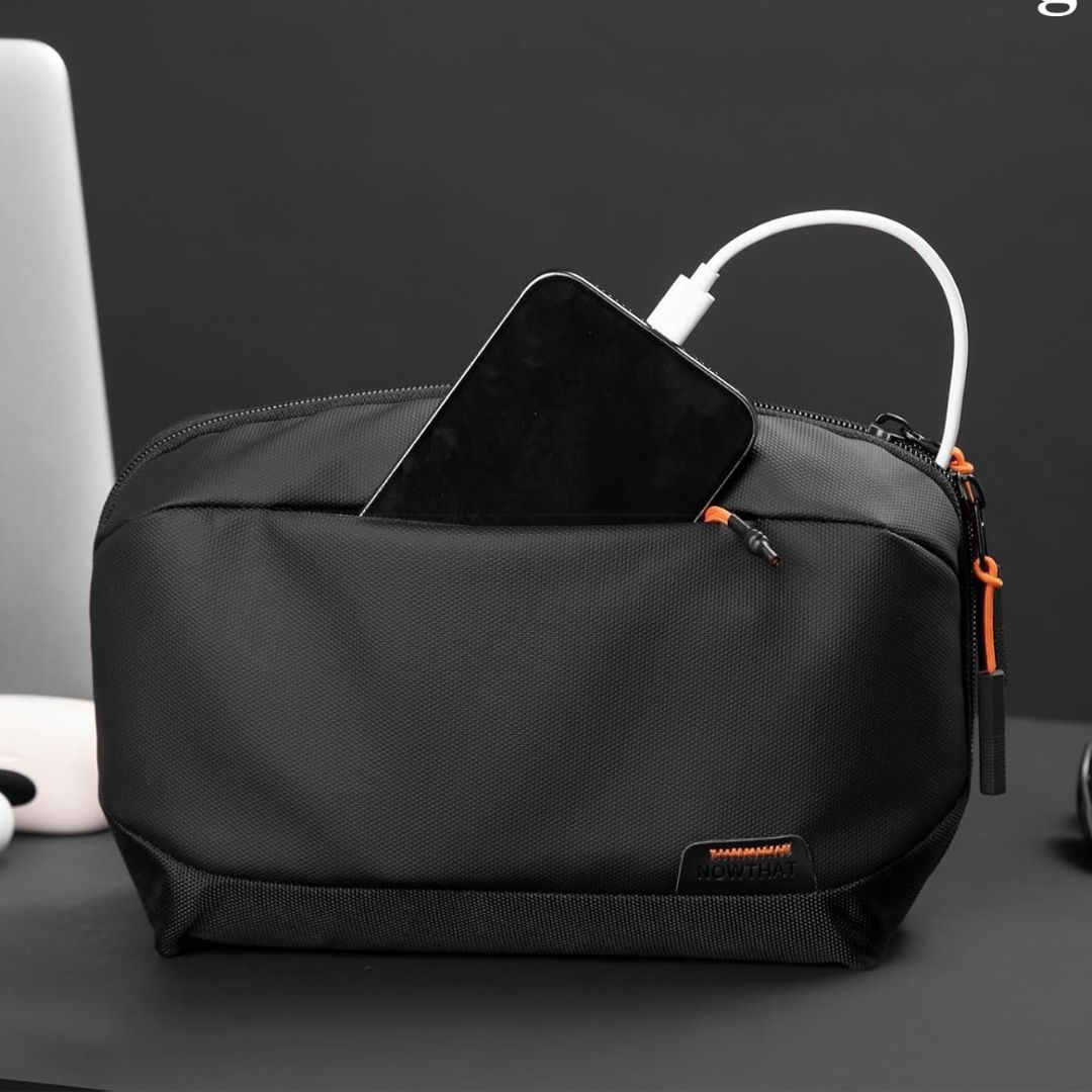 - Utrzymywanie porządku: organizer pozwala przechowywać wszystkie akcesoria elektroniczne w jednej torbie w sposób uporządkowany, zapobiegając splątaniu kabli. Umożliwia szybkie odnalezienie potrzebnych przedmiotów i eliminuje poczucie chaosu podczas codziennego użytkowania lub podróży z dużą ilością sprzętu elektronicznego.