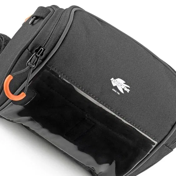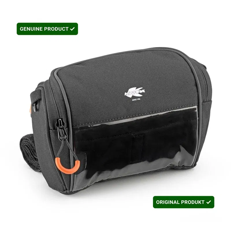 Torba mocowana do kierownicy, pozwala na spakowanie podstawowych narzędzi, które mogą przydać się podczas podróży. Na wierzchu torby znajduje się przezroczysta kieszeń na smartfon lub nawigację.