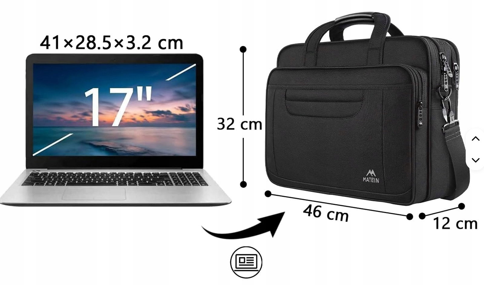 Torba na Laptopa 17,3" Matein 1172 Wodoodporna Biznesowa Czarna