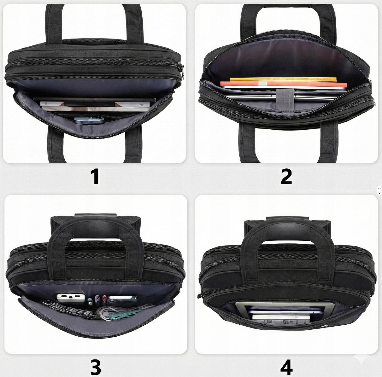 ✅ PRZEMYŚLANA ORGANIZACJA – Torba posiada aż 4 główne sekcje (widoczne na zdjęciach), dzięki czemu zachowasz idealny porządek. Osobne miejsce na laptopa, dokumenty, tablet, zasilacz, myszkę, długopisy i inne akcesoria.