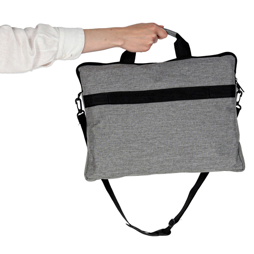 WYGODNE MOCOWANIE DO WALIZKI - Dzięki specjalnemu paskowi z tyłu, torbę można łatwo i stabilnie umocować na rączce walizki. To doskonałe rozwiązanie na czas podróży – pozwala wygodnie przemieszczać się z bagażem bez konieczności dodatkowego noszenia torby osobno. Sprawdzi się idealnie na lotnisku, w pociągu czy na konferencji.