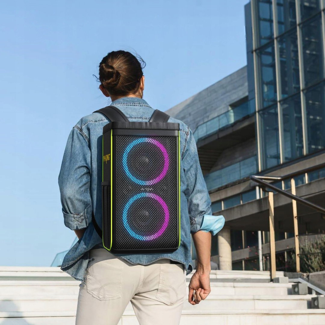 - Duża pojemność i pełna ochrona: torba z łatwością mieści głośnik W-KING T9, zapewniając mu kompleksową ochronę. Spód plecaka wyposażony jest w amortyzującą poduszkę, a boki i góra są wzmocnione mocnym nylonem. To idealne rozwiązanie dla osób, które chcą bezpiecznie zabrać głośnik T9 na wycieczkę, imprezę plenerową lub w podróż.