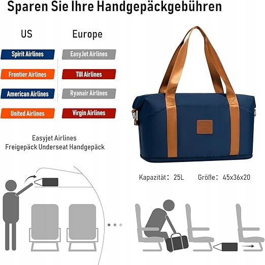 Bagaż podręczny do samolotu: Idealna torba podręczna na podróż samolotem. Zintegrowana osłona wózka nasuwana jest na rączkę wózka, dzięki czemu poruszanie się po lotnisku staje się niezwykle proste. Idealny jako przedmiot osobisty w bagażniku i pod siedzeniem w czasie lotu. Idealne miejsce dla pań na weekendowe wyjazdy służbowe lub prywatne.