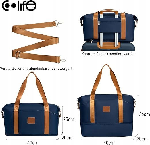 COOLIFE Torba podróżna Duża torba sportowa 40 x 25 x 20 Ryanair Podręczny bagaż podręczny Nocleg Weekendowy bagaż podręczny dla kobiet Wodoodporna torba sportowa i podróżna, niebieska,