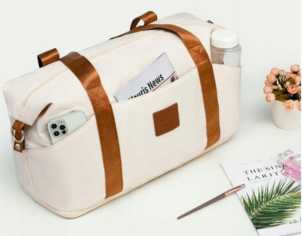 Torba podróżna do samolotu 40x20x25cm pokładowa kabinowa beżowa na ramię