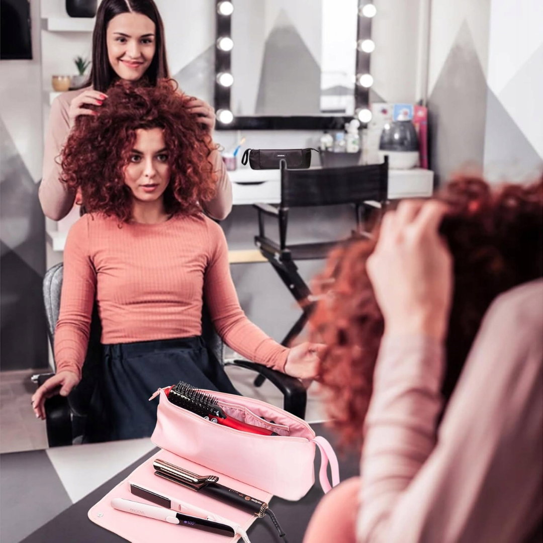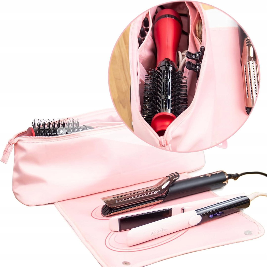 Torba podróżna ANGENIL na akcesoria do włosów, z wewnętrznymi kieszeniami i matą odporną na ciepło, do prostownicy, lokówki, suszarki i szczotek, idealna na prezent dla kobiet.
