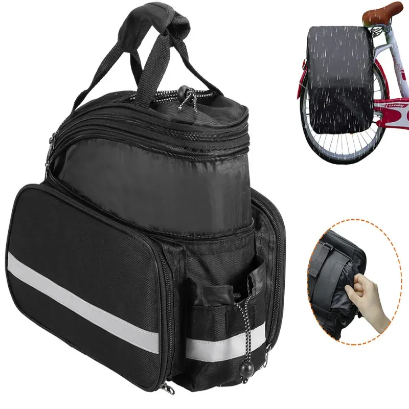 Wielofunkcyjna duża torba rowerowa montowana do bagażnika. Niezwykle przydatna podczas dłuższych wypraw rowerowych, można w niej spakować ubrania, drobne rzeczy, pożywienie.