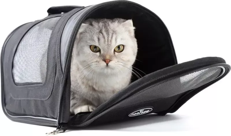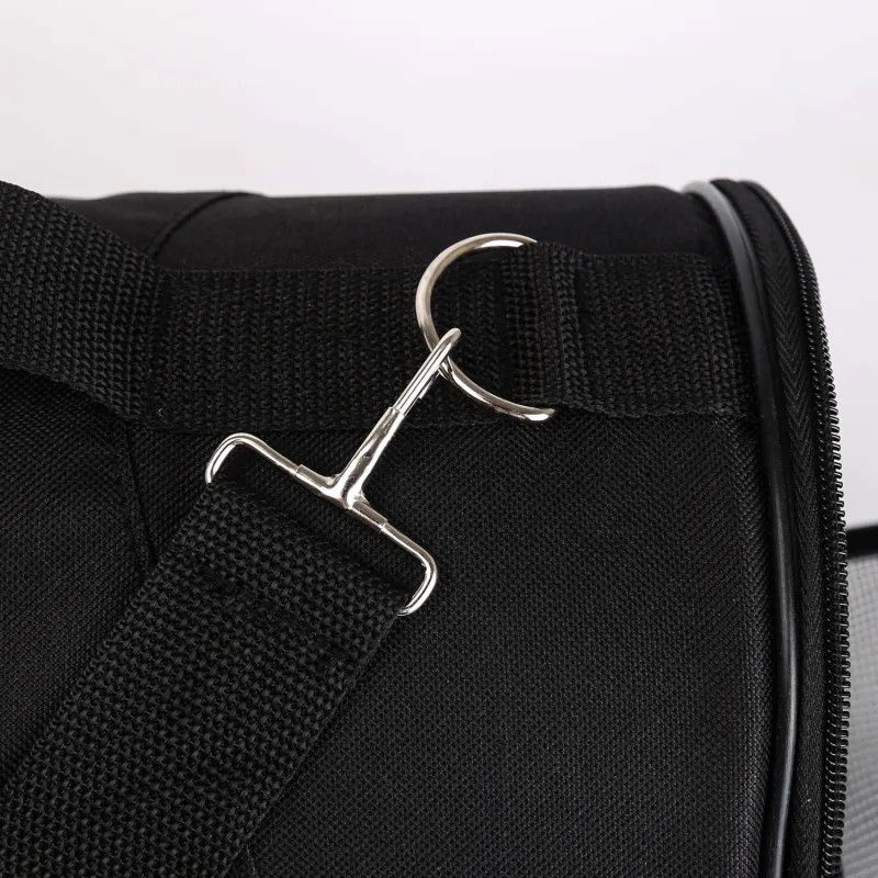 Torba podróżna dla zwierząt została zaprojektowana z myślą o wygodzie i bezpieczeństwie. Łatwa w montażu, system zamków błyskawicznych umożliwia otwieranie torby z obu stron. Siatkowe wstawki przednie i boczne zapewniają lepszą wentylację, co redukuje stres u psów i kotów podczas podróży. Dodatkowo, miękkie, wytrzymałe i odporne na zużycie dno, klamra do mocowania obroży skutecznie zabezpiecza zwierzę przed ucieczką po otwarciu. Torba wyposażona jest w cztery nóżki, które umożliwiają jej stabilne postawienie na ziemi, co zwiększa jej wytrzymałość i izoluje od podłoża. Poręczny uchwyt oraz dołączony pasek do przenoszenia sprawiają, że transport staje się jeszcze bardziej komfortowy. Cechy transportera: