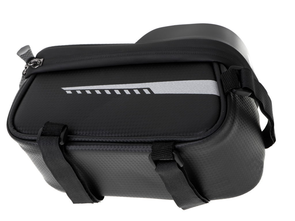 Kompaktowy rozmiar torby nie przeszkadza podczas jazdy, a montaż jest prosty i pewny – trzy paski na rzepy (jeden do kierownicy, dwa do ramy) zapewniają stabilność torby niezależnie od modelu roweru.