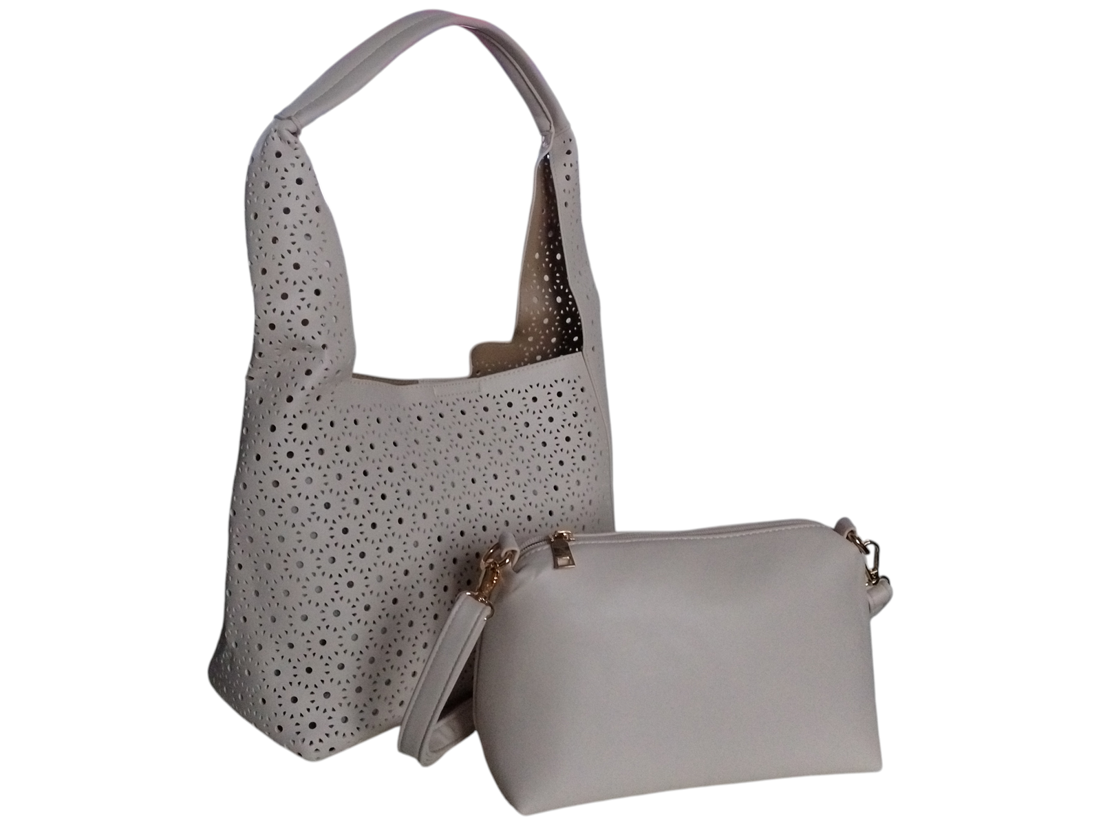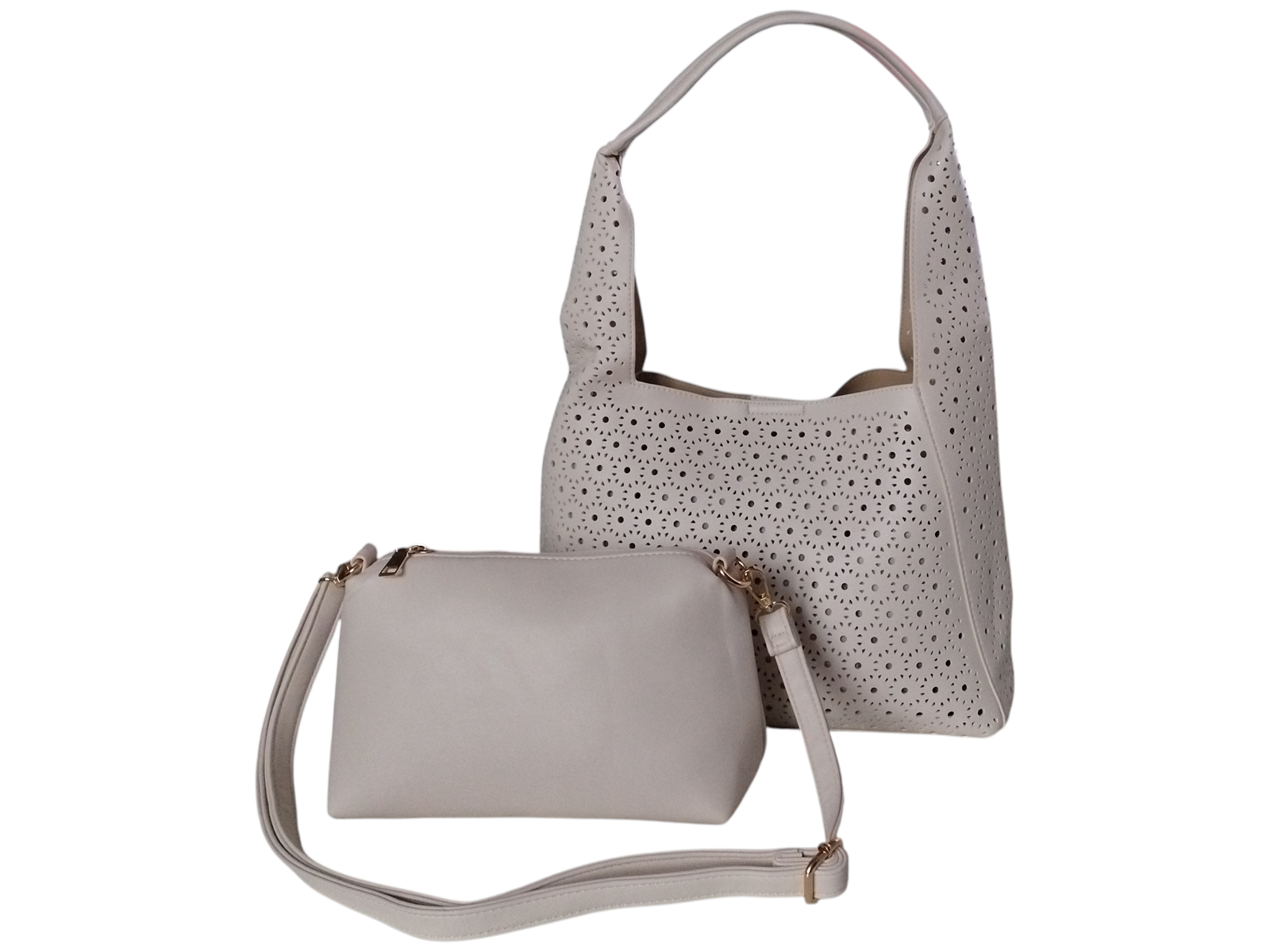 Torba Shopper na Ramię +Mała Torebka Damska Listonoszka, Miejska, Beżowy