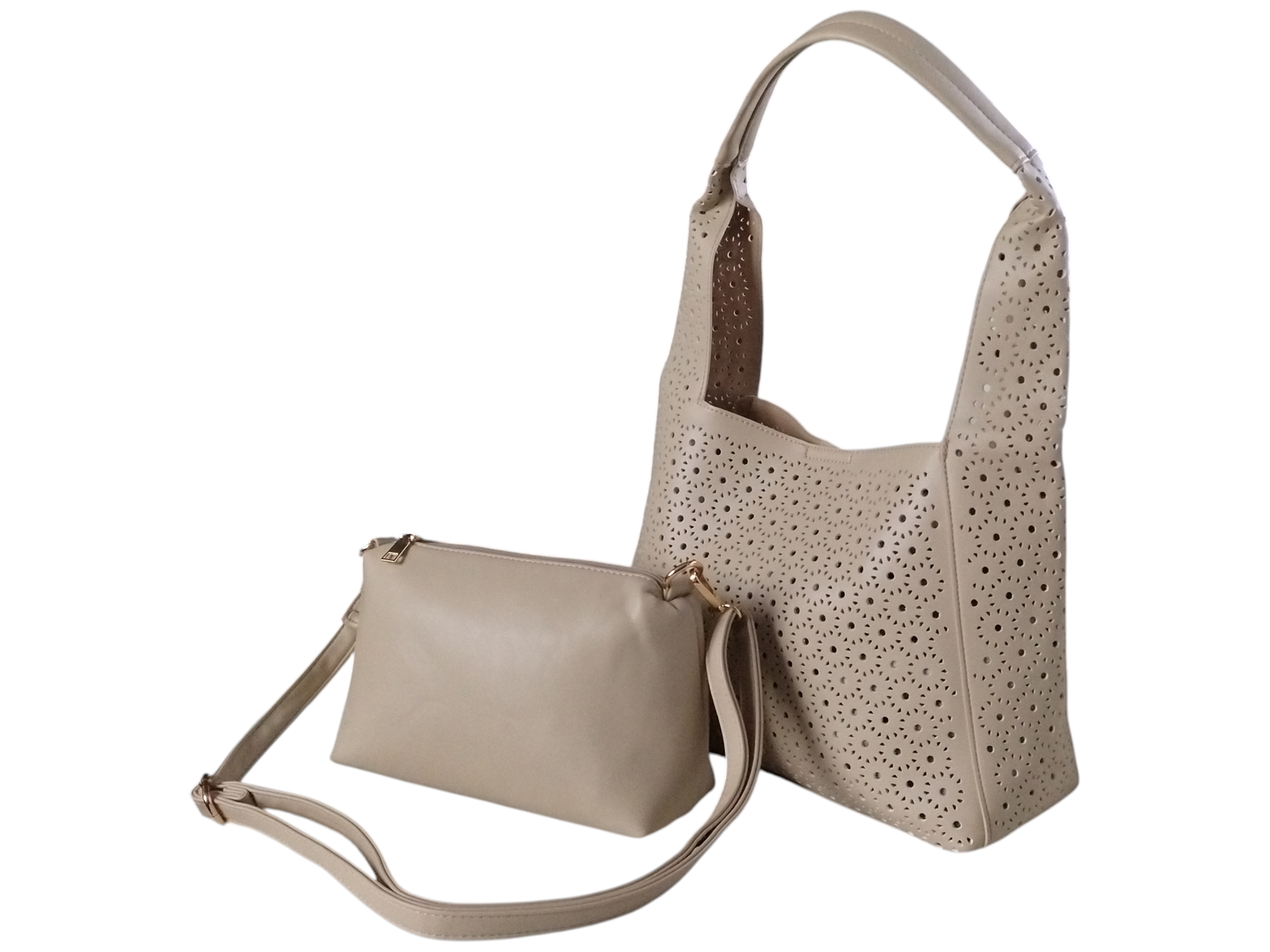 Torba Shopper Na Ramię +Mała Torebka Damska Listonoszka, Miejska Ciemny Beż