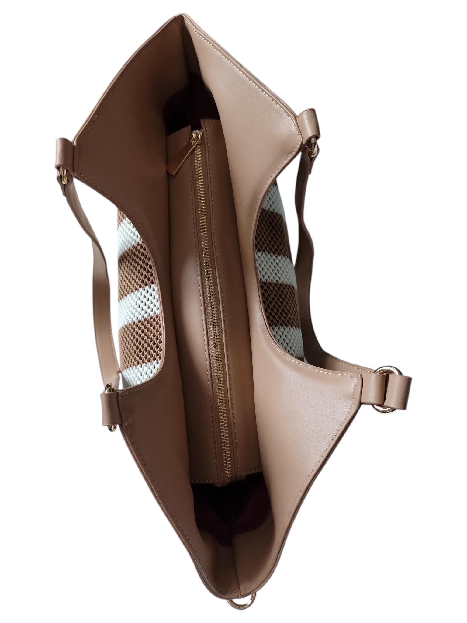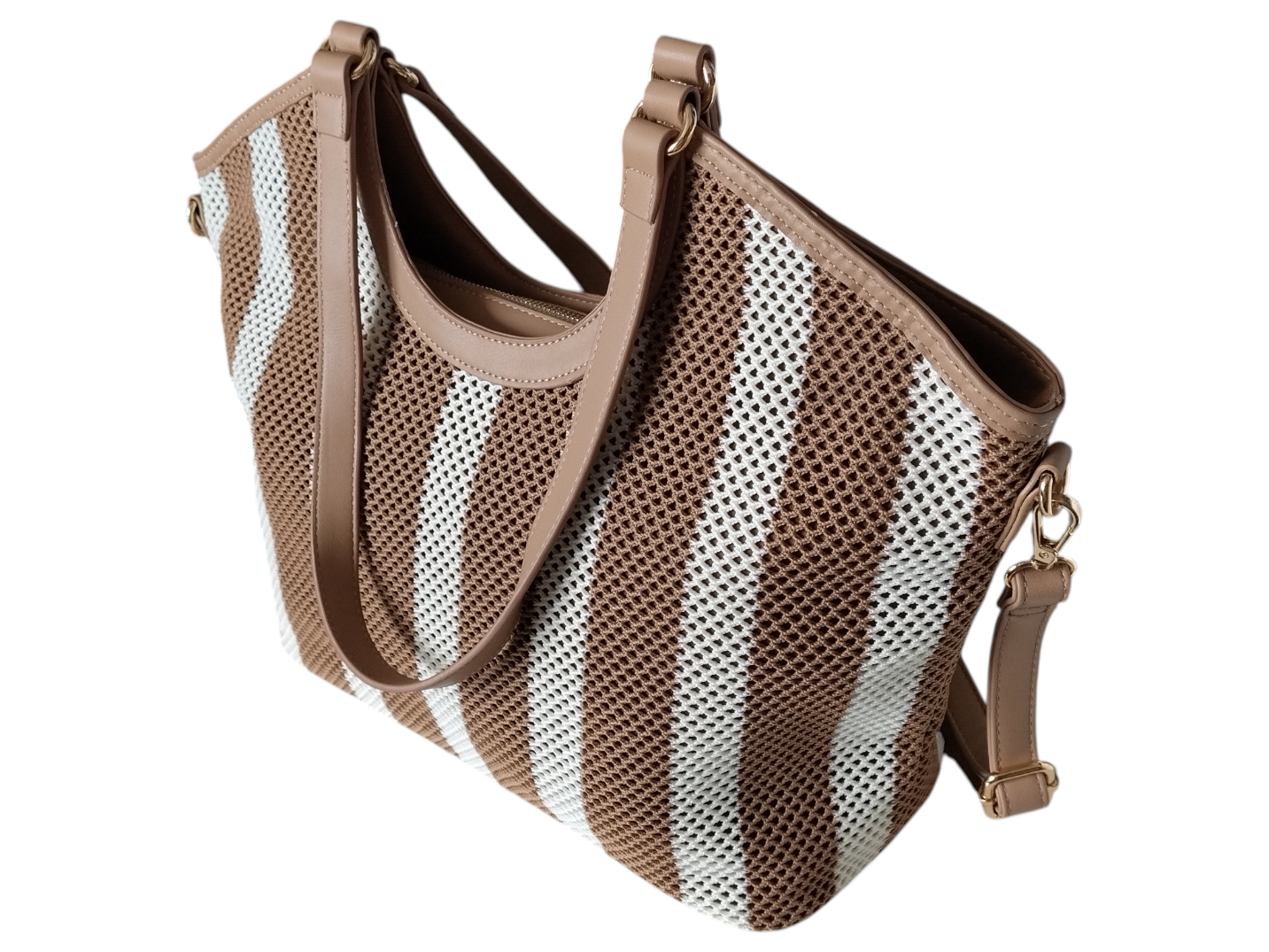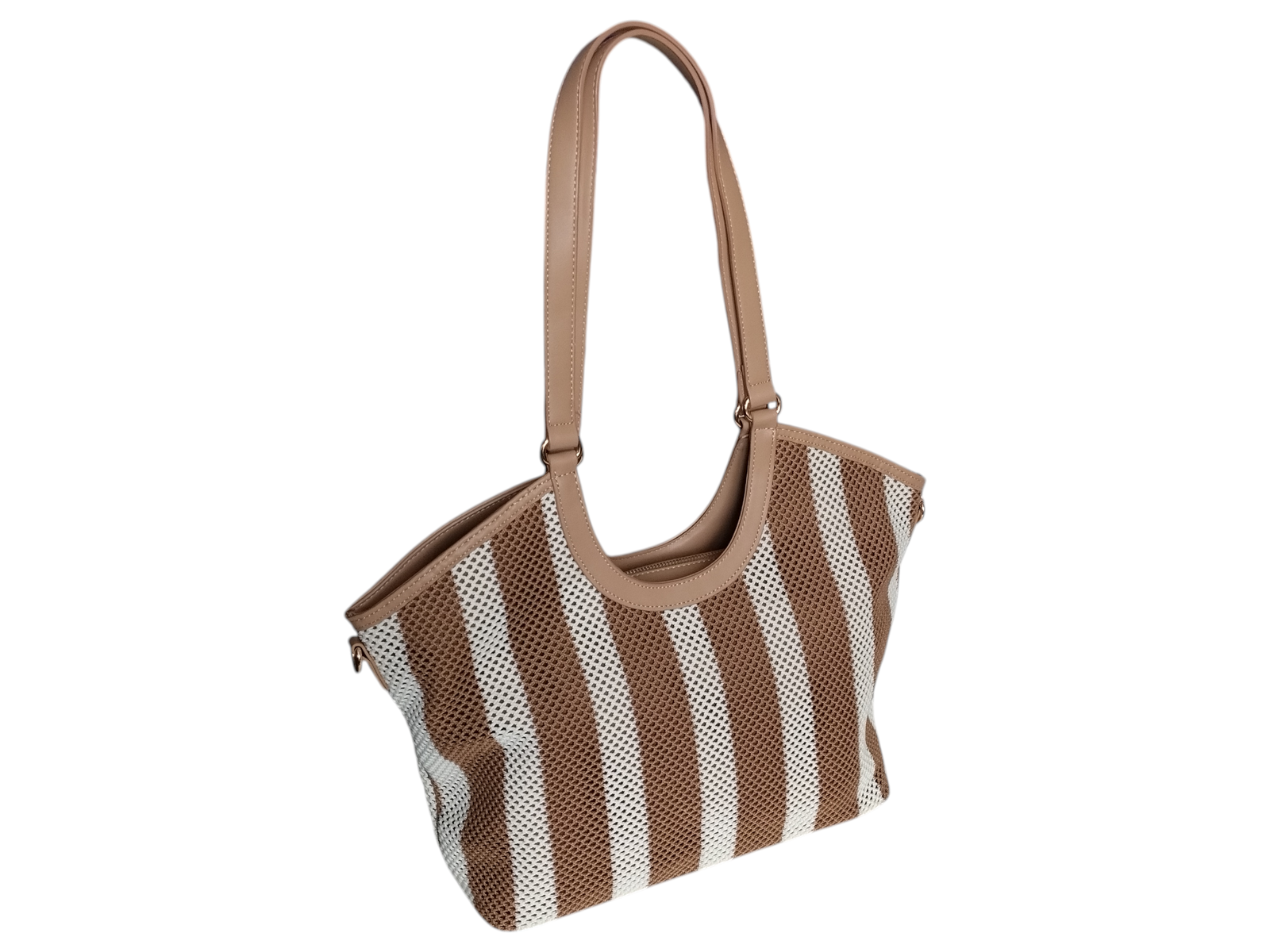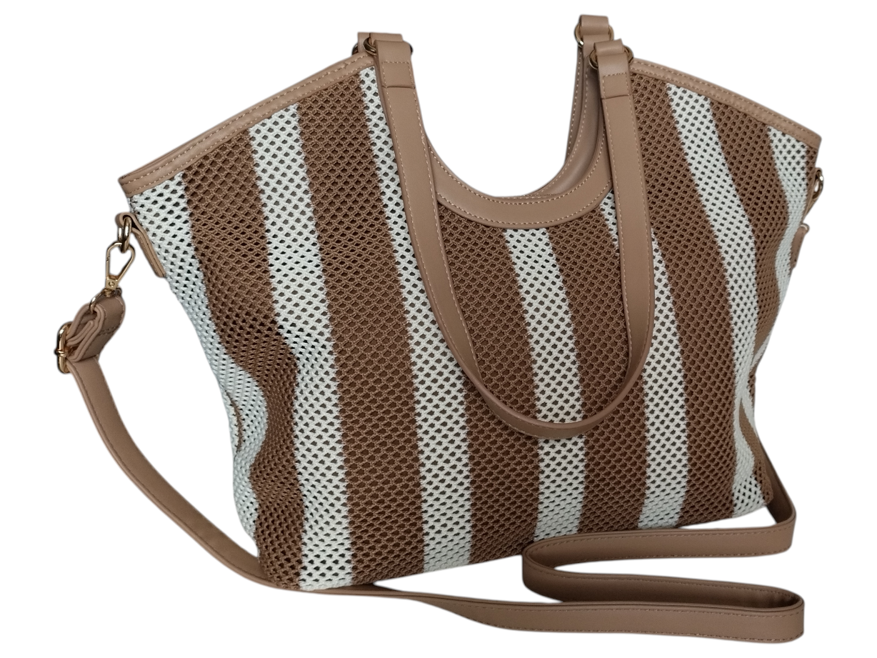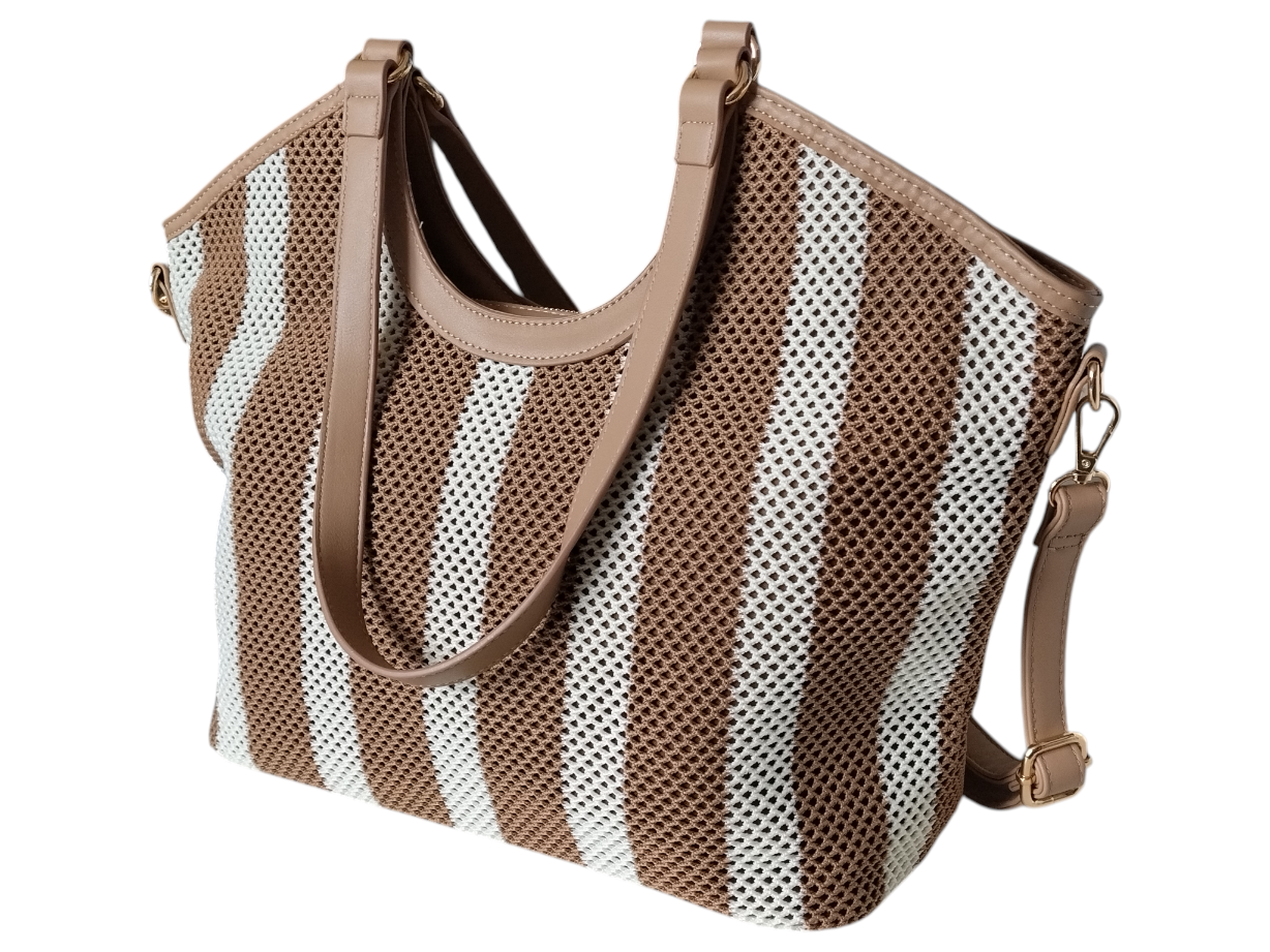 Torba Shopper na Ramię Torebka Damska Listonoszka Miejska, Beżowy