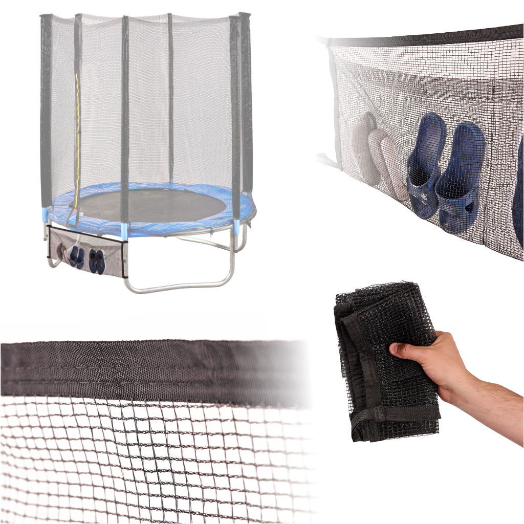 WYGODNE PRZECHOWYWANIE BUTÓW I AKCESORIÓW - Torba siatka to praktyczny dodatek, który pozwala zachować czystość i porządek wokół trampoliny. Dzięki dwóm przestronnym kieszeniom można w niej umieścić nie tylko buty, ale również telefony, okulary czy małe zabawki. Otwarta forma kieszeni zapewnia łatwy dostęp do ich zawartości, co sprawia, że torba doskonale sprawdzi się podczas codziennego użytkowania.