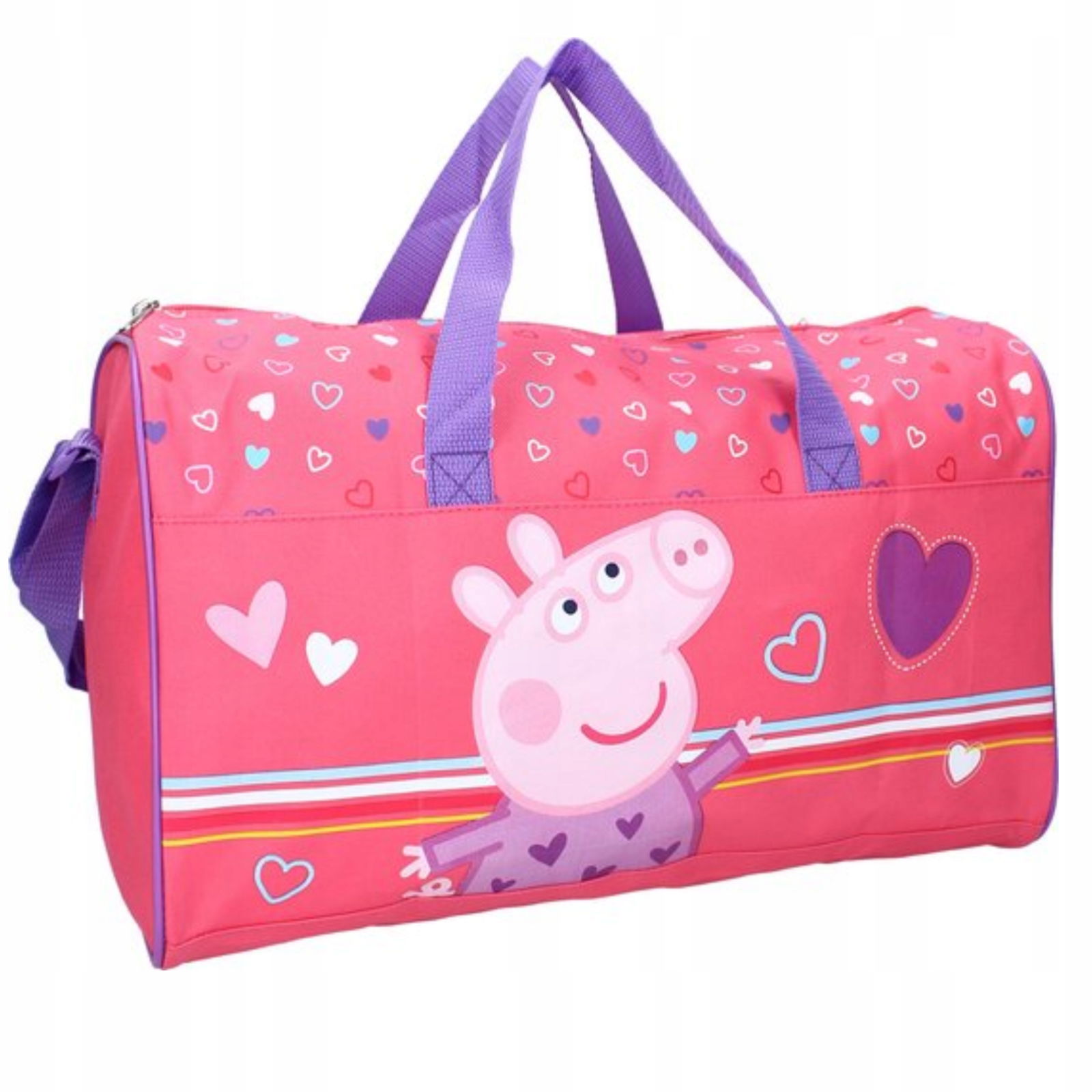 Praktyczna i lekka torba sportowa dla dziewczynki z motywem Świnki Peppy. Idealna na trening, zajęcia WF, do przedszkola lub jako torba podróżna.