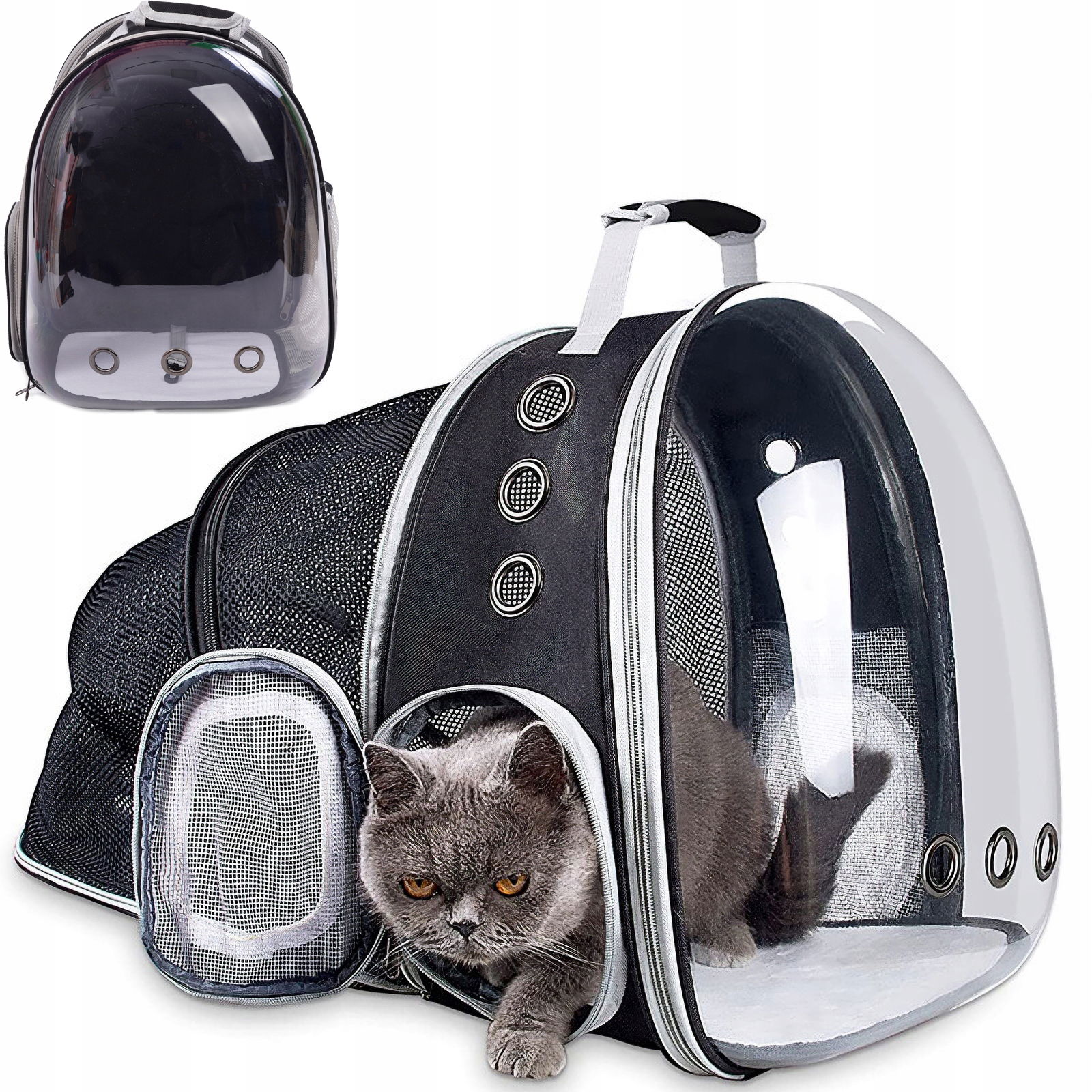 Transporter posiada wbudowane siatki wentylacyjne, które można rozłożyć, maksymalizując przestrzeń i komfort Twojego zwierzaka. Z przodu transporter można poszerzyć, a tył plecaka całkowicie rozłożyć, co sprawia, że Twój pupil będzie miał więcej miejsca.