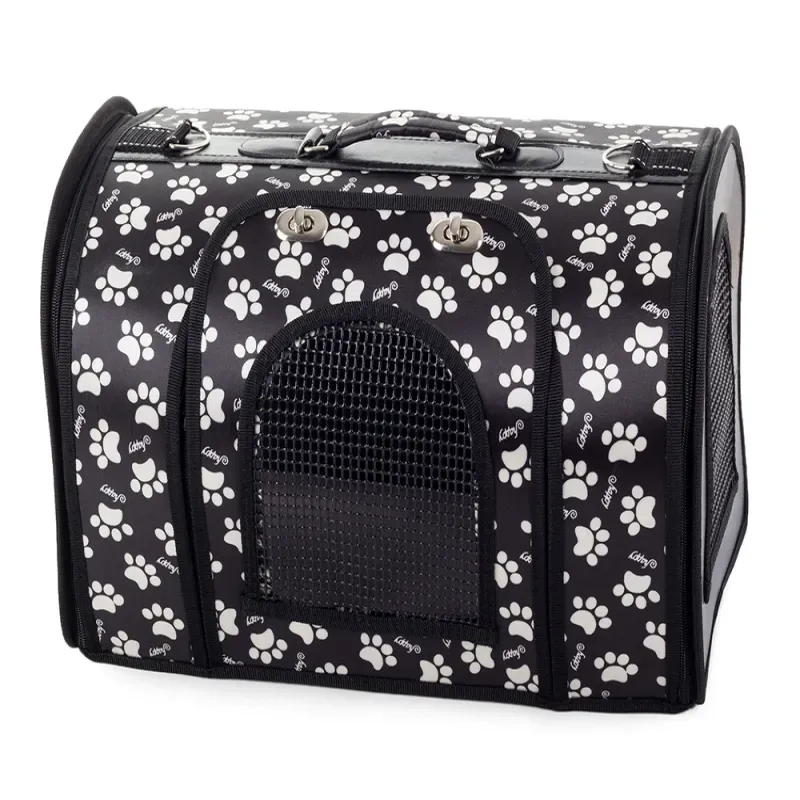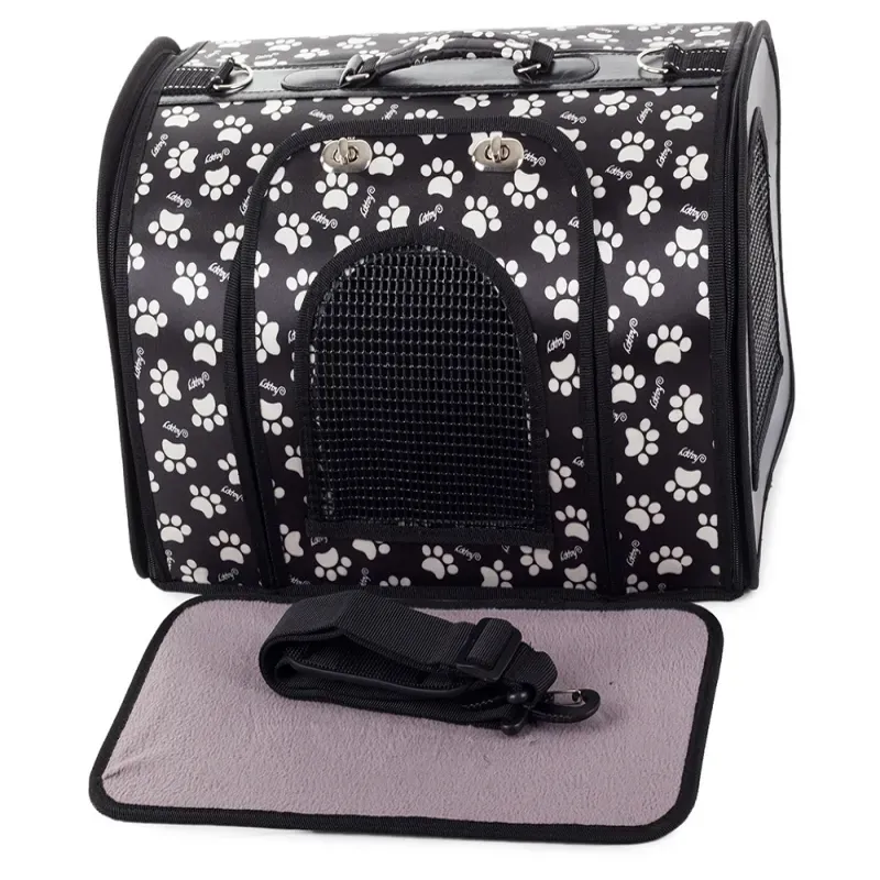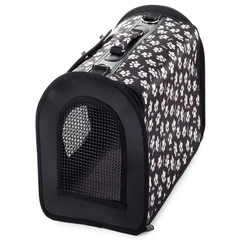 TORBA TRANSPORTOWA DLA PSA KOTA KRÓLIKA I MAŁYCH ZWIERZĄT DOMOWYCH ROZMIAR: 44cm x 25,5cm x 26cm. Czarna w łapki