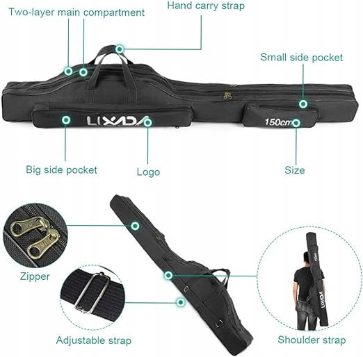 Przenośny: z uchwytem do noszenia i regulowanym paskiem na ramię, wygodny do przenoszenia. Jest również składany, aby można go było przechowywać w plecaku i gotowy do pracy, duży bagaż wędkarski dla każdego wędkarza.