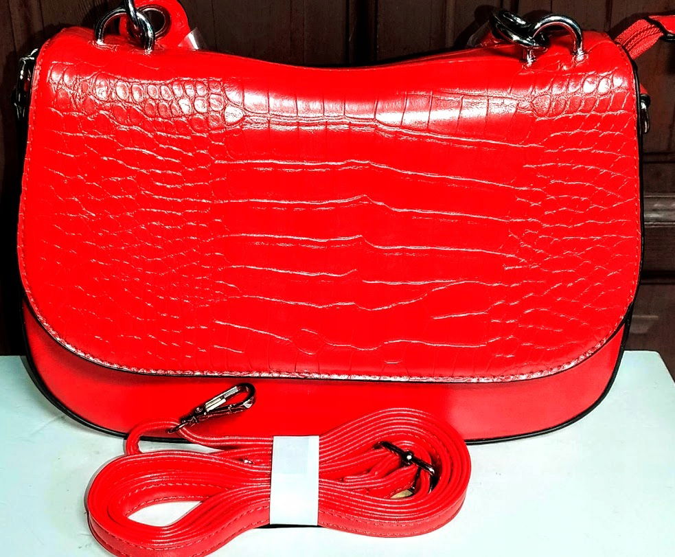 Torebka CZERWONA imitacja skóry krokodyla mała