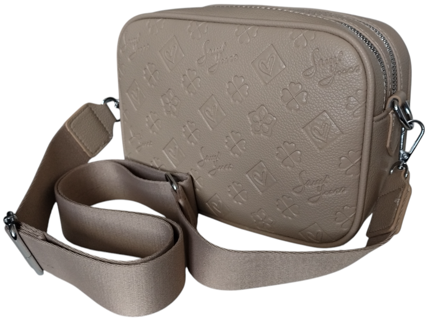 Informacja o Bespieczeństwie: Torebka do użytku codziennego. Nieodpowiednia dla dzieci – ryzyko uduszenia / skaleczenia małymi elementami i paskami. Używać zgodnie z przeznaczeniem. Nie przeciążać. Trzymać z dala od ognia i wysokiej temperatury. Czyszczenie wilgotną miękką ściereczką; nie prać; nie używać rozpuszczalników