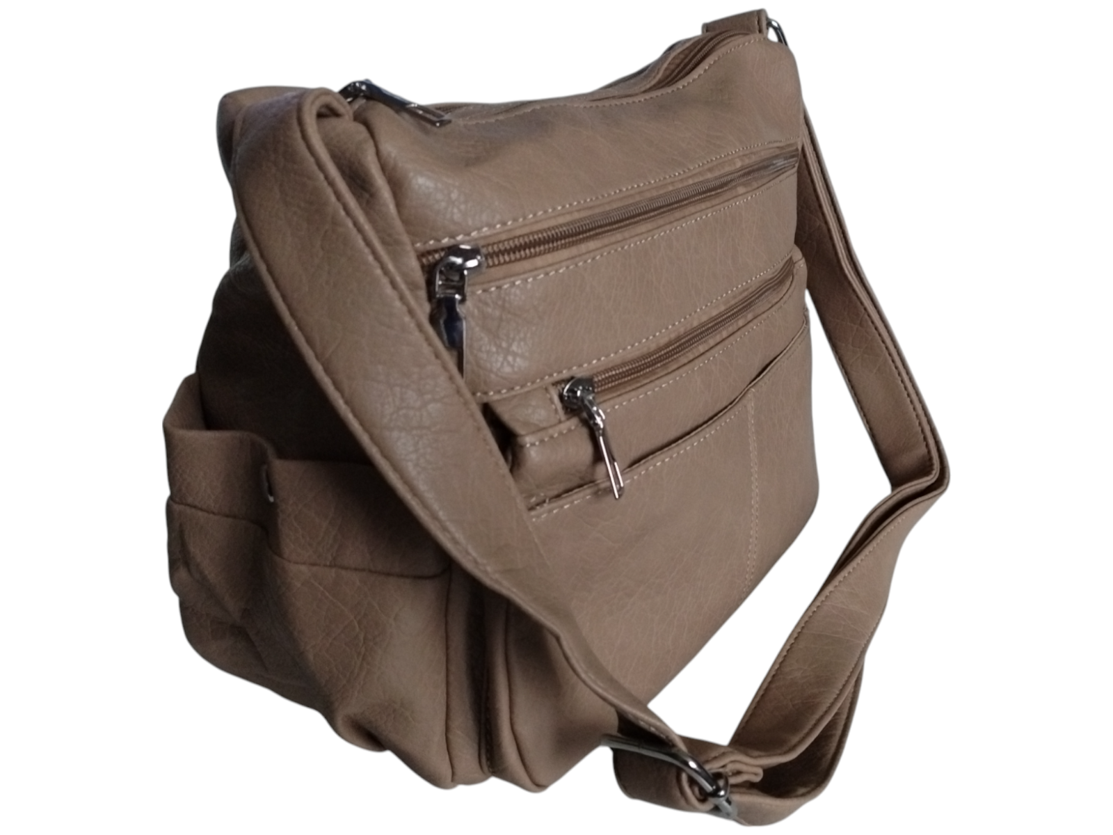 kieszenie 9 (7 zewnętrznych - 3 z zamkiem i 2 zapinane kieszonki po bokach torebki i 2 kieszonki , 2 wewnętrzne - 1 z zamkiem i 1 kieszonka)