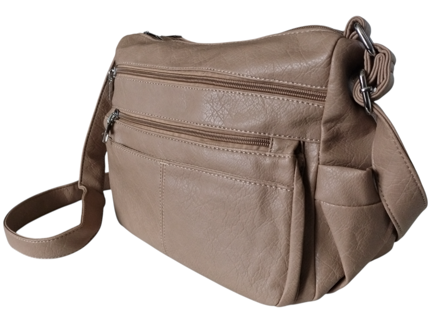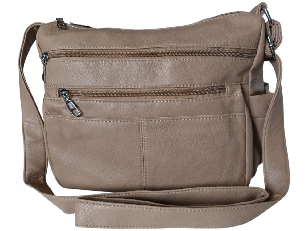 Torebka Damska Listonoszka na Ramię - Dużo Kieszeni, Brązowa, Miejska A5