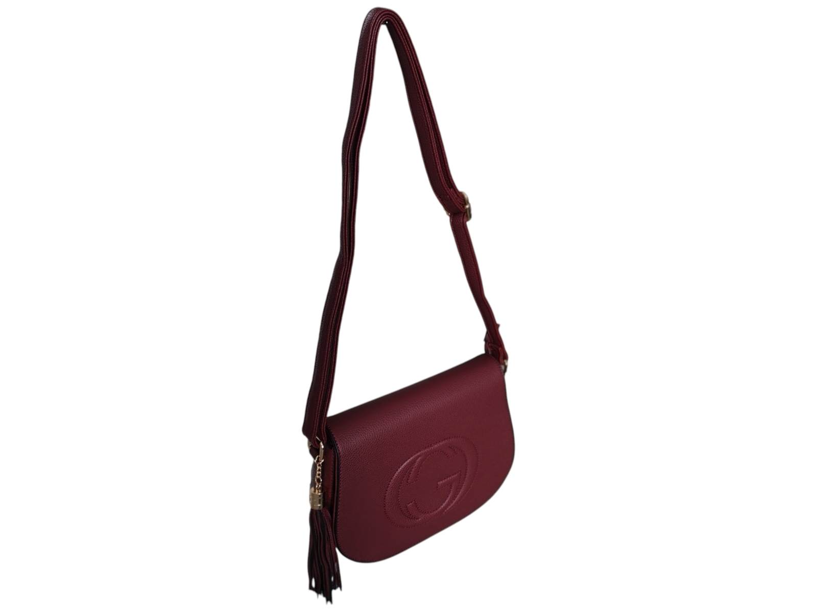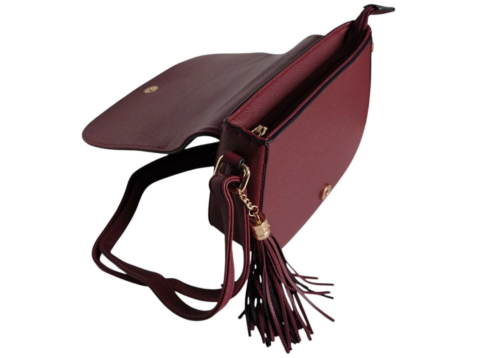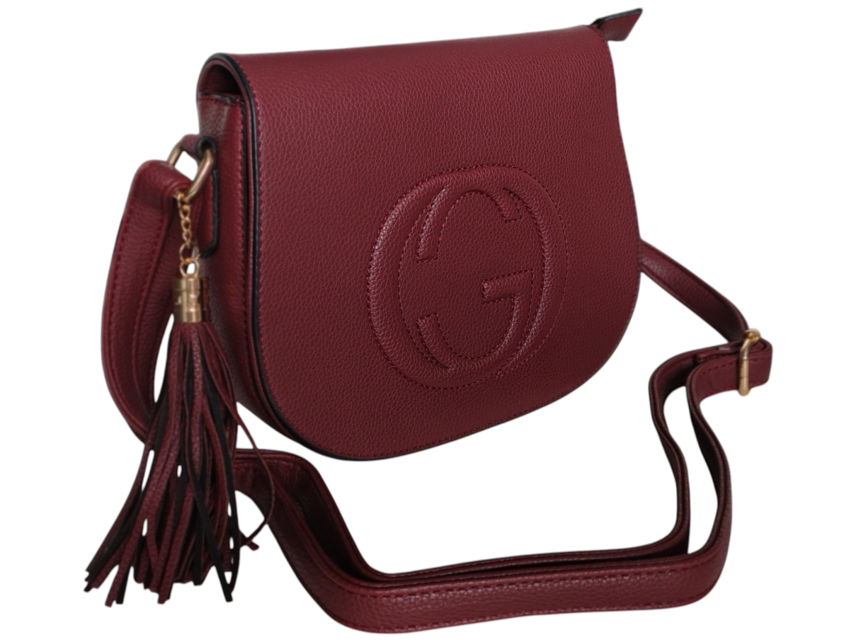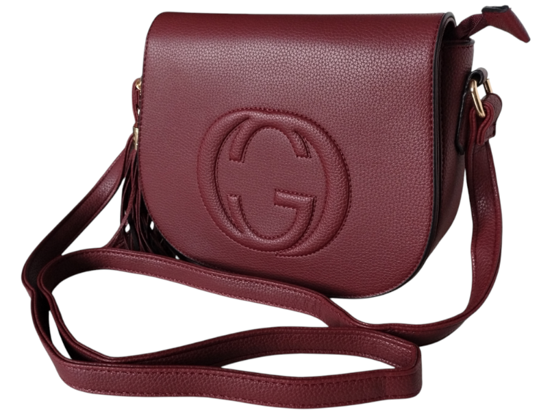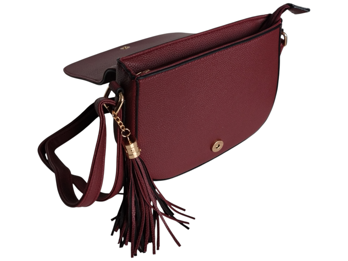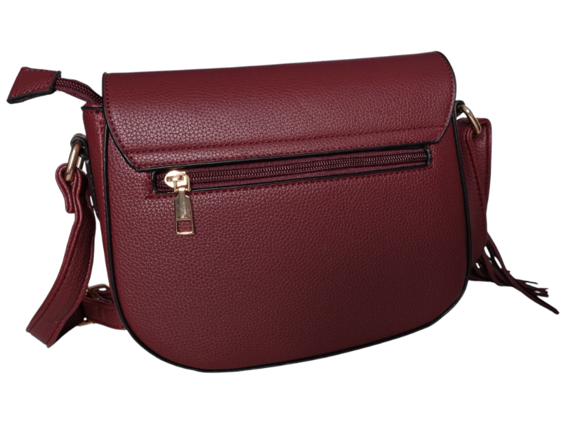 Torebka Damska Listonoszka na Ramię z Frędzlem Bordowy, Skóra Ekologiczna
