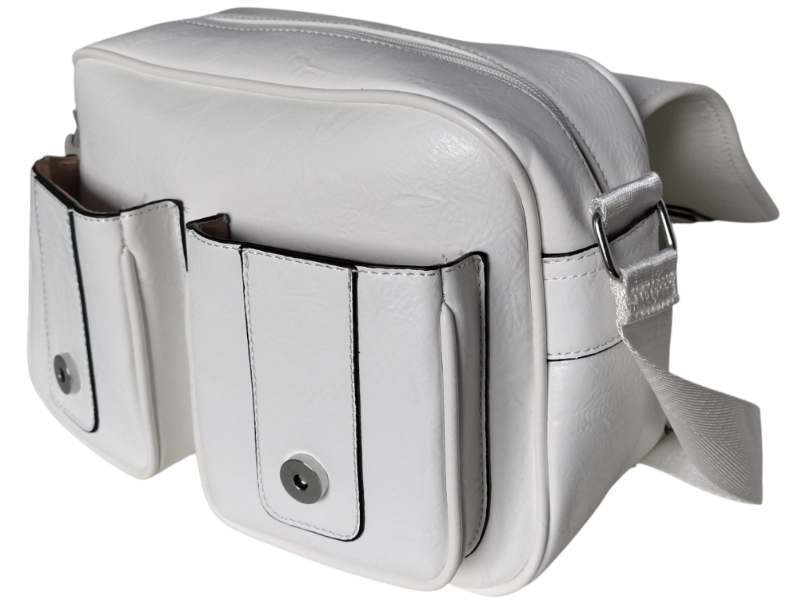 Torebka Damska Listonoszka na Ramię z klapą, Szeroki Pasek Biały Ekoskóra