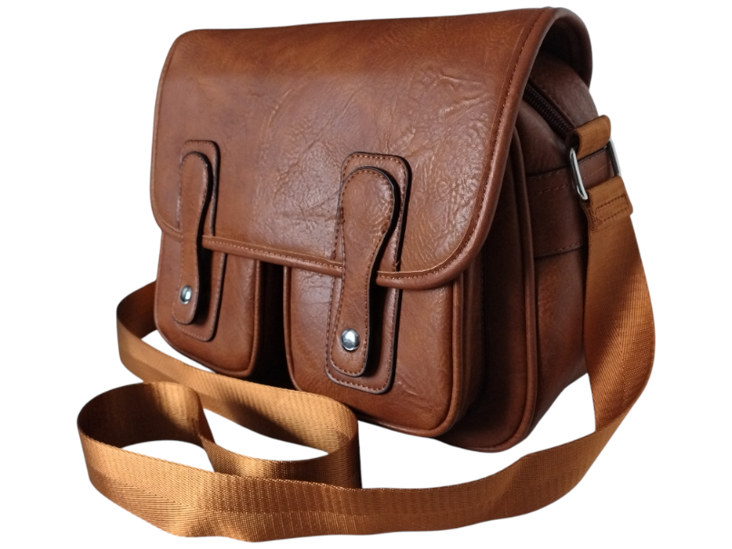Torebka Damska Listonoszka na Ramię z klapą, Szeroki Pasek Brązowy Ekoskóra