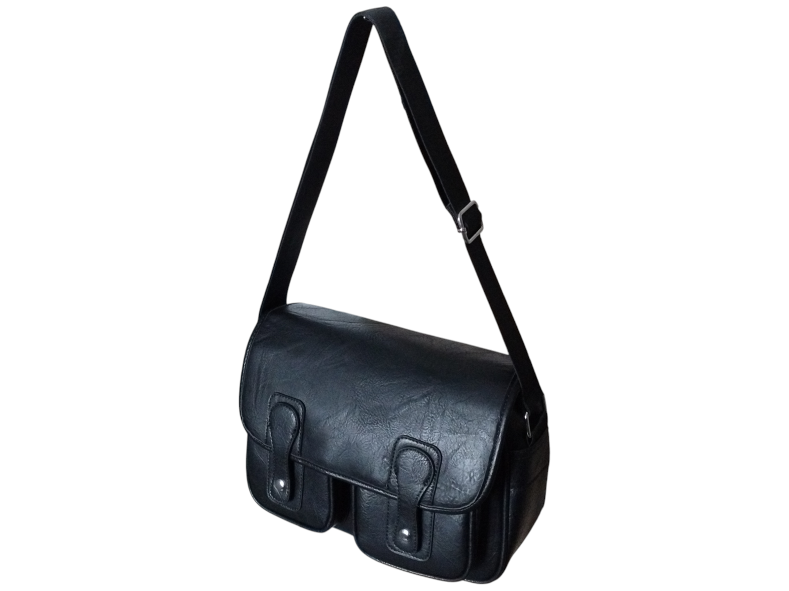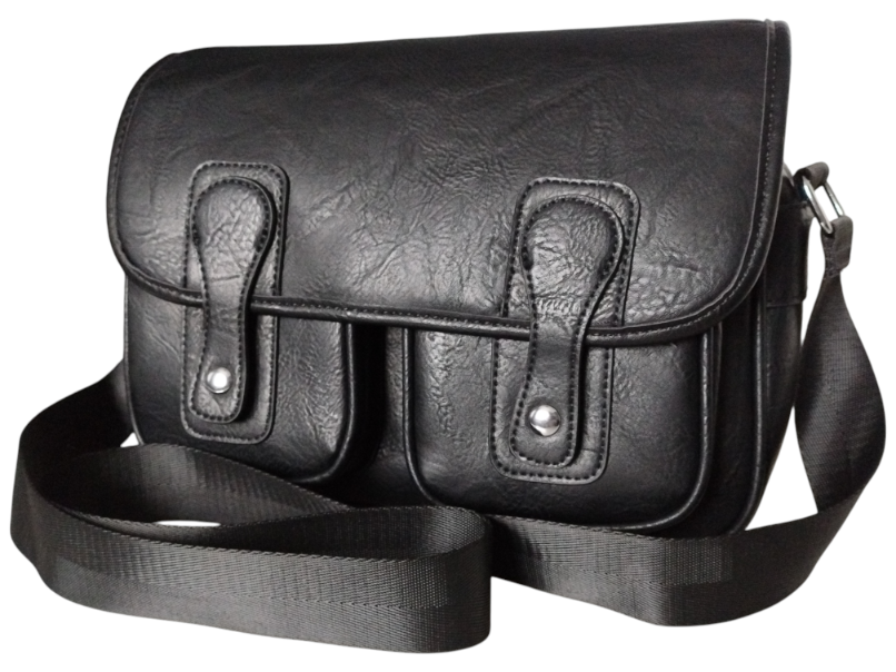 Torebka Damska Listonoszka Na Ramię Z Klapą, Szeroki Pasek Czarny Eko-Skóra