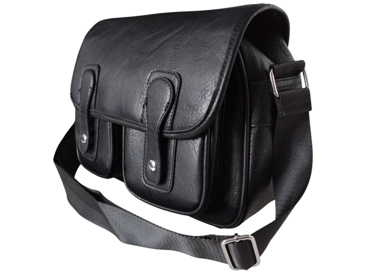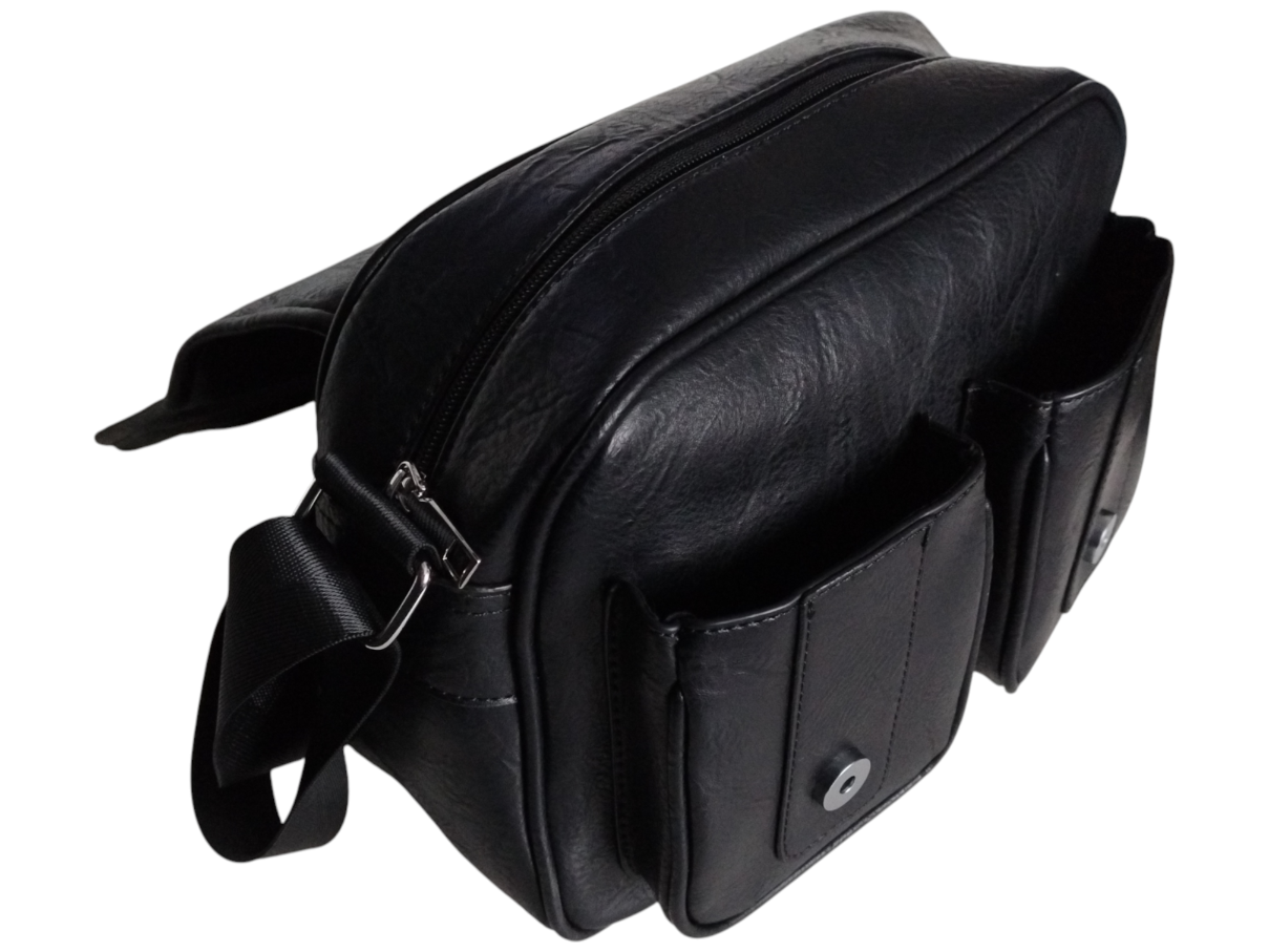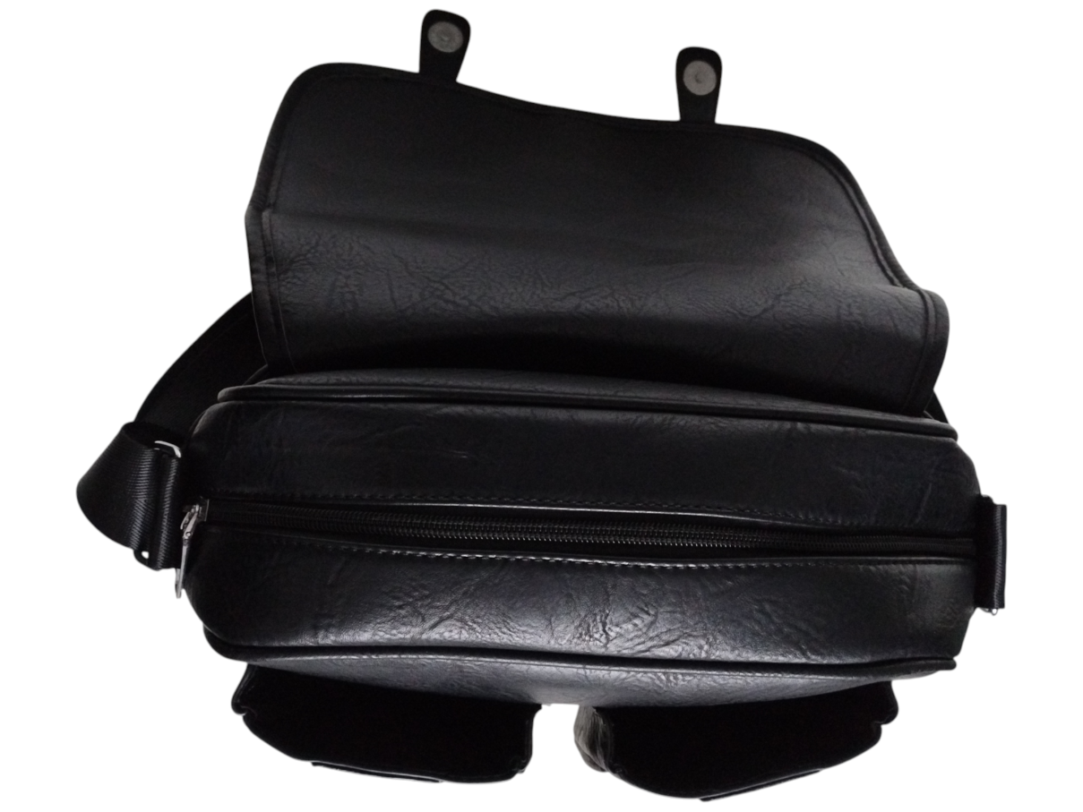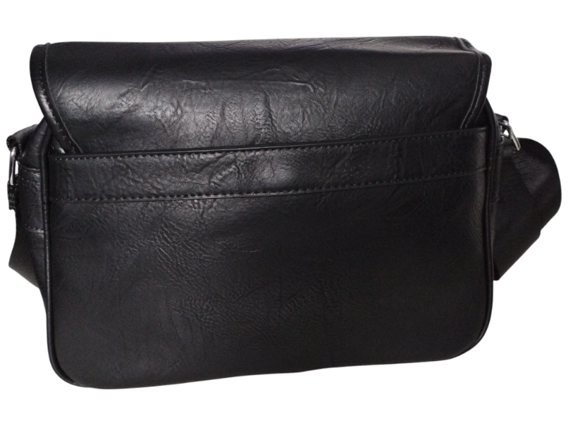 Torebka Damska Listonoszka na Ramię z Klapą, Szeroki Pasek Czarny Eko-skóra