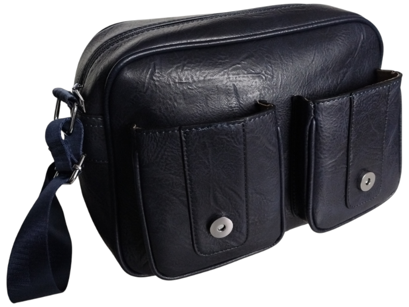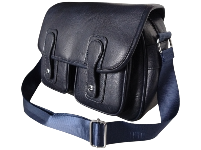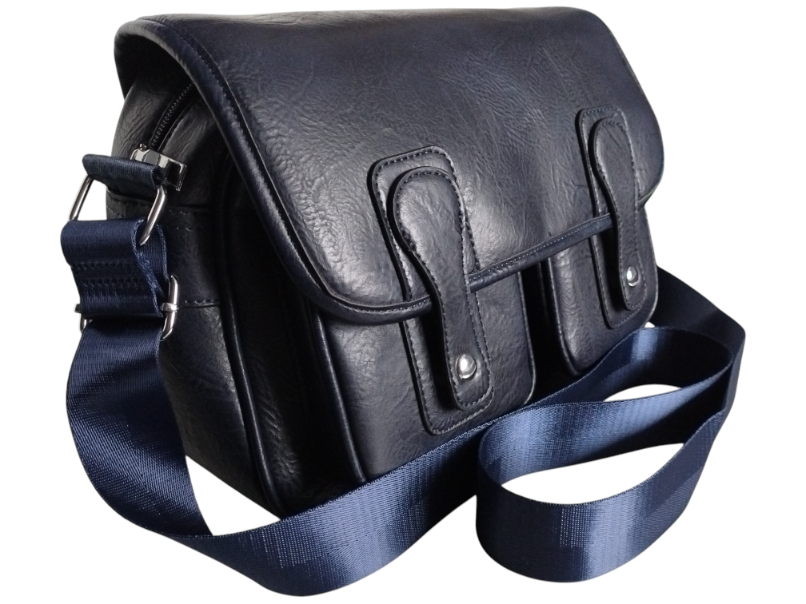 Torebka Damska Listonoszka na Ramię z klapą Szeroki Pasek Niebieski