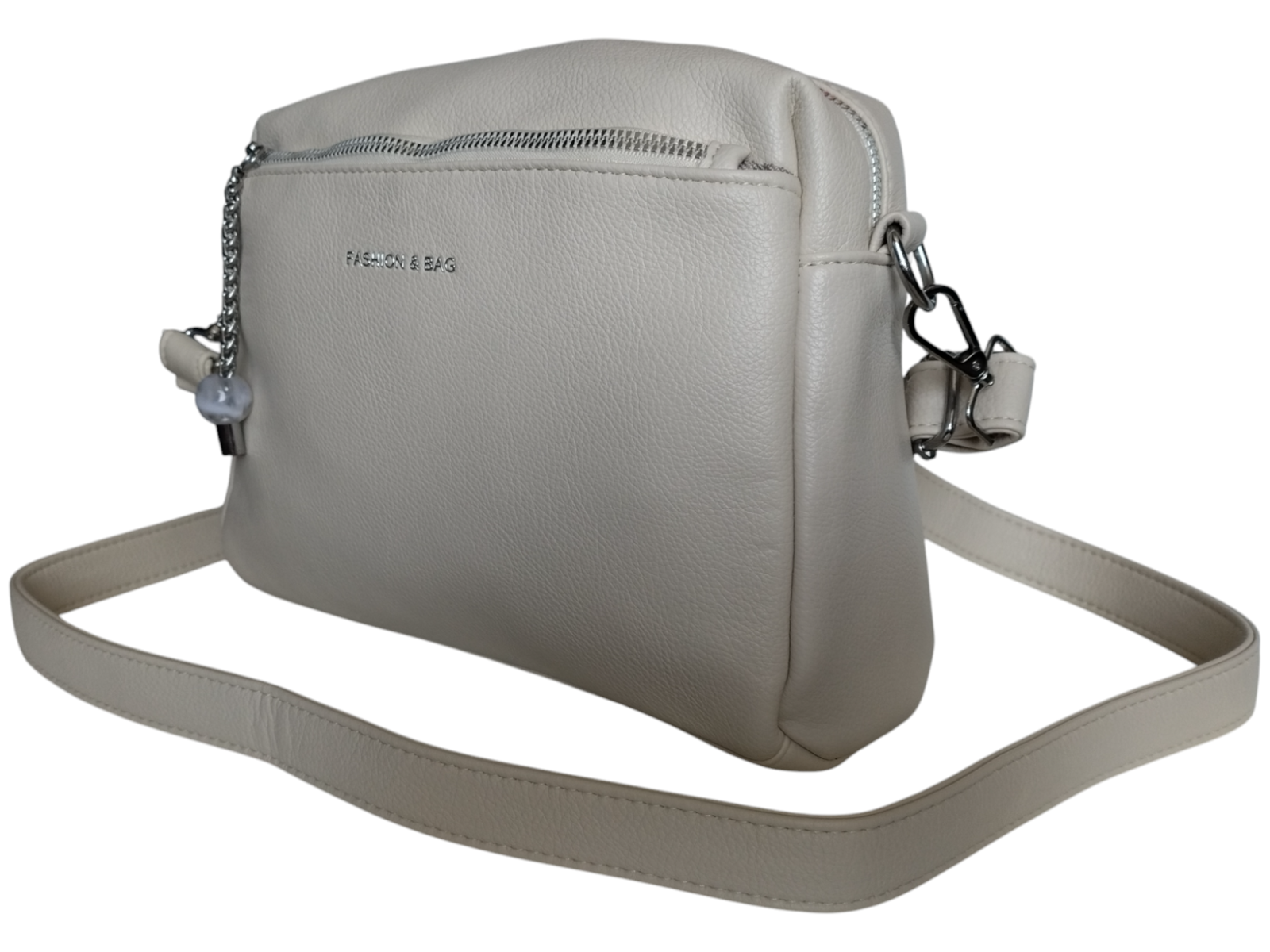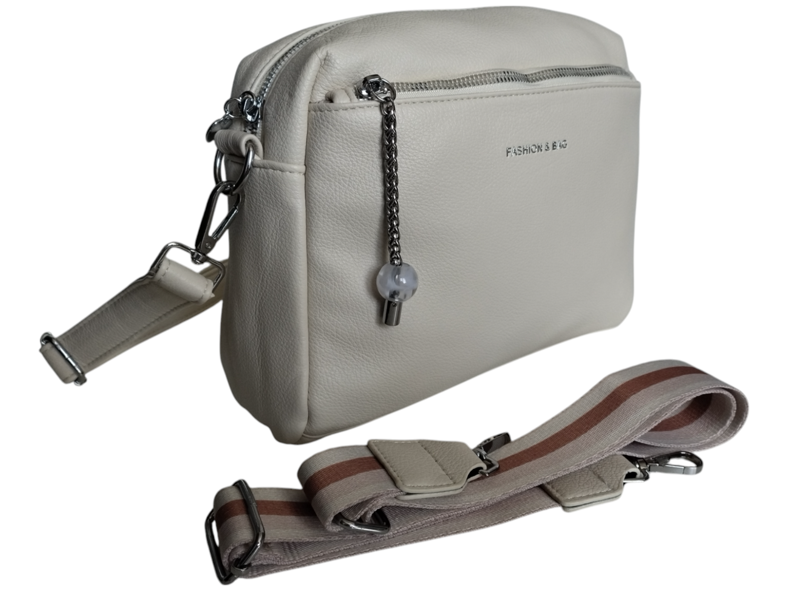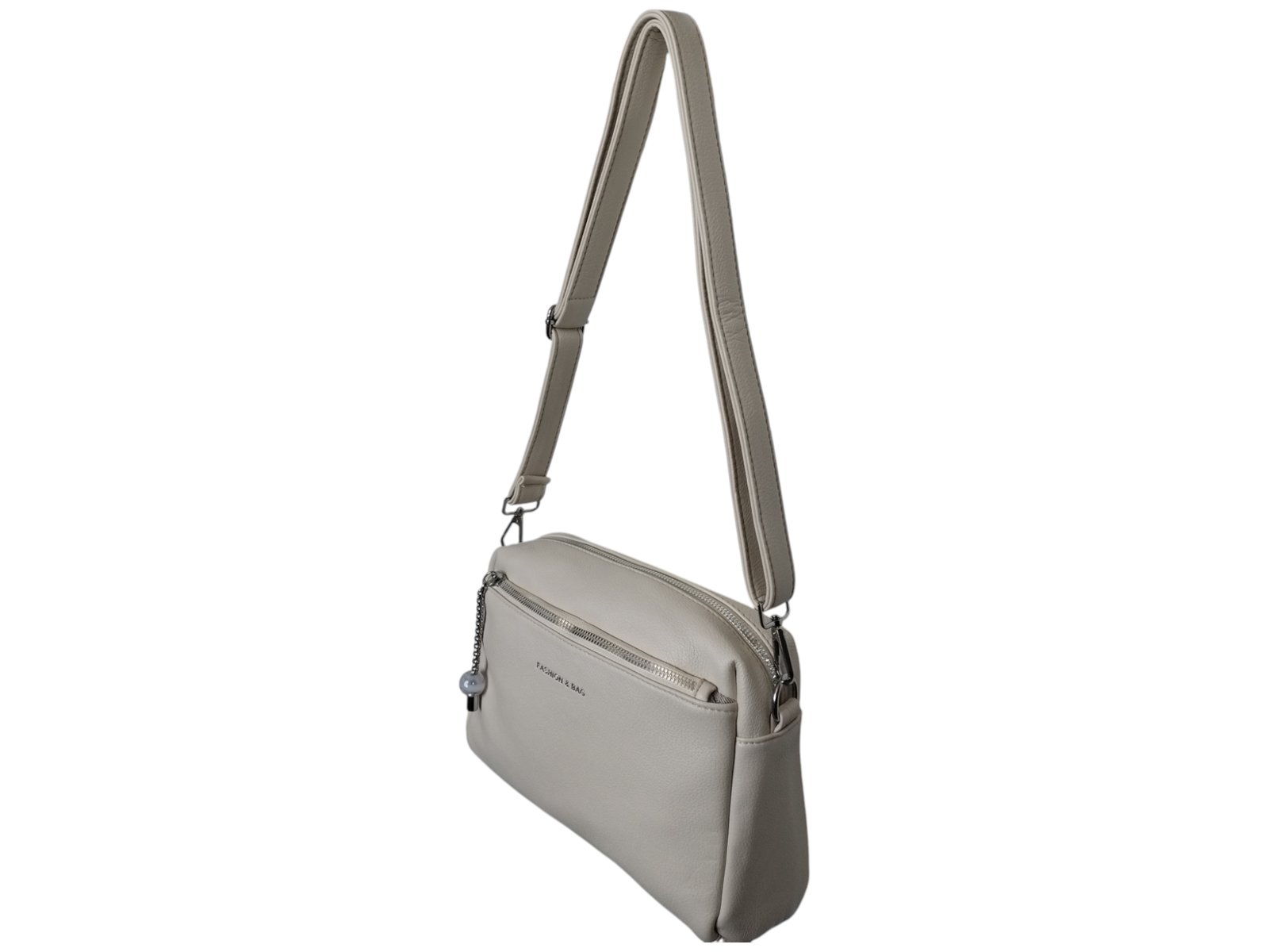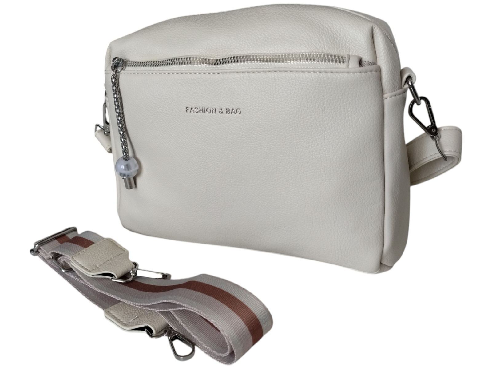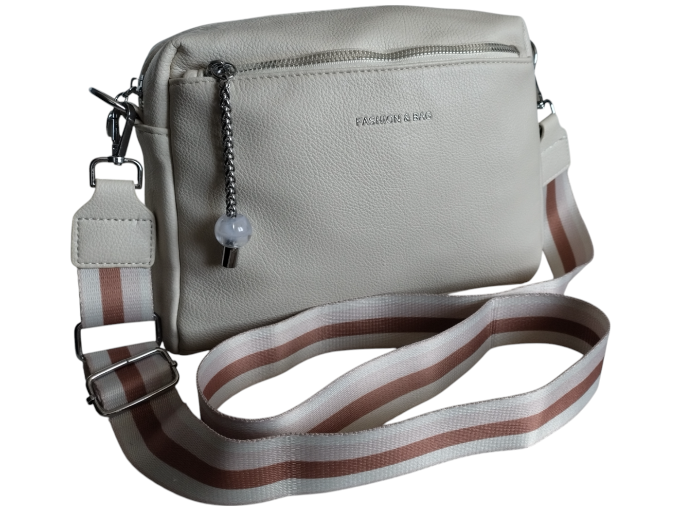 Torebka Damska Listonoszka na Ramię z Szerokim Paskiem Beżowa, Miejska A5