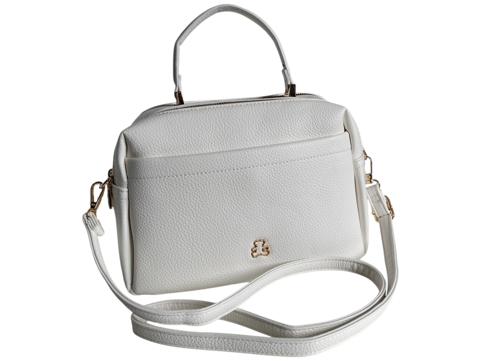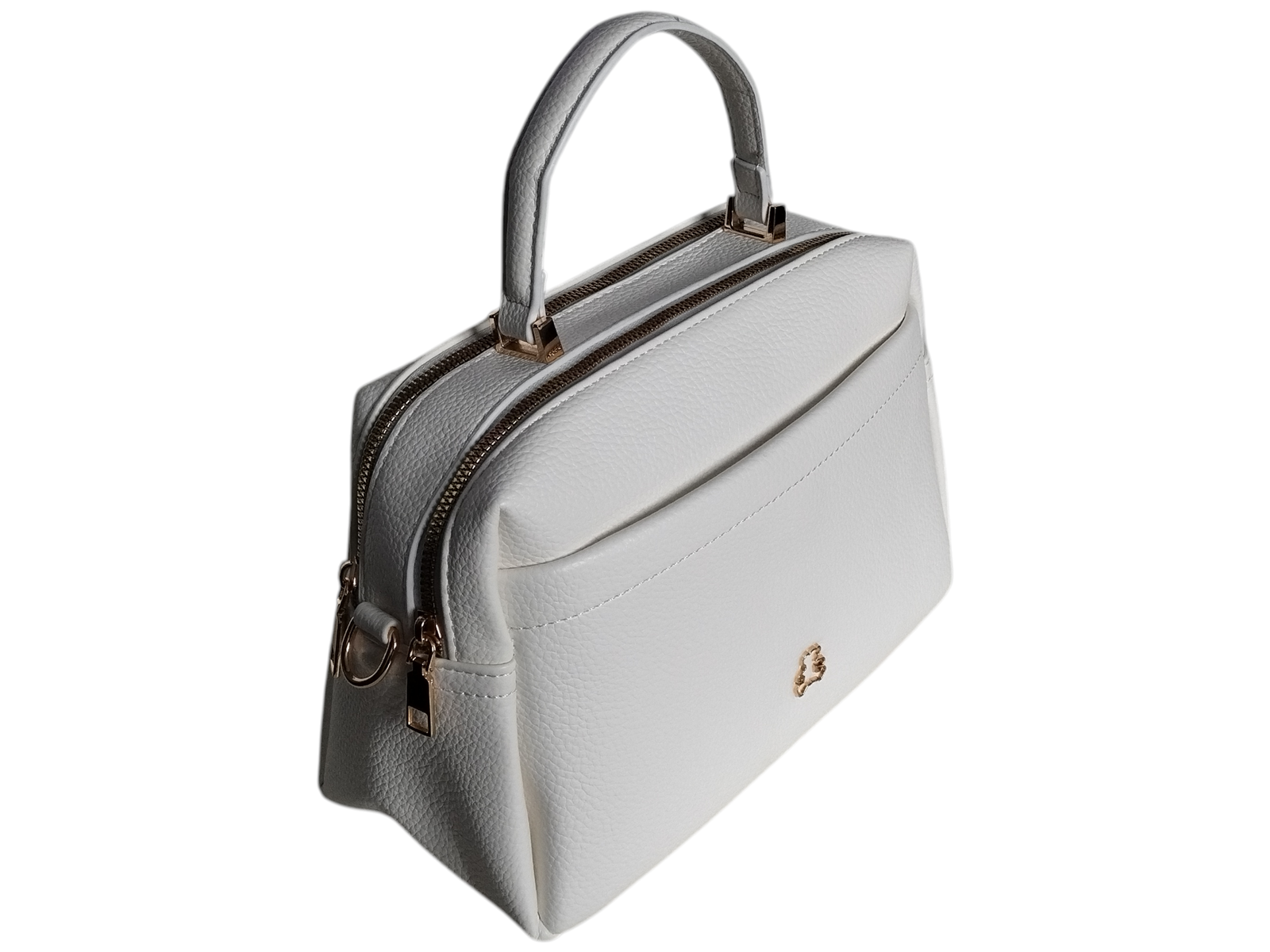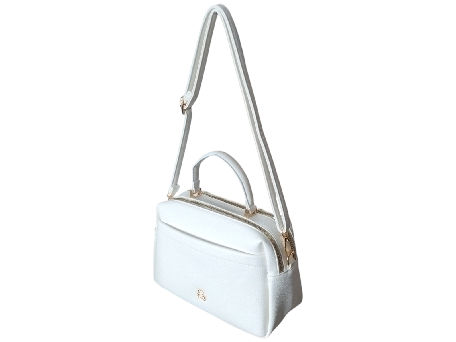 Torebka Damska, Mała Listonoszka na Ramię, Miejski Kuferek Eko-skóra Biały