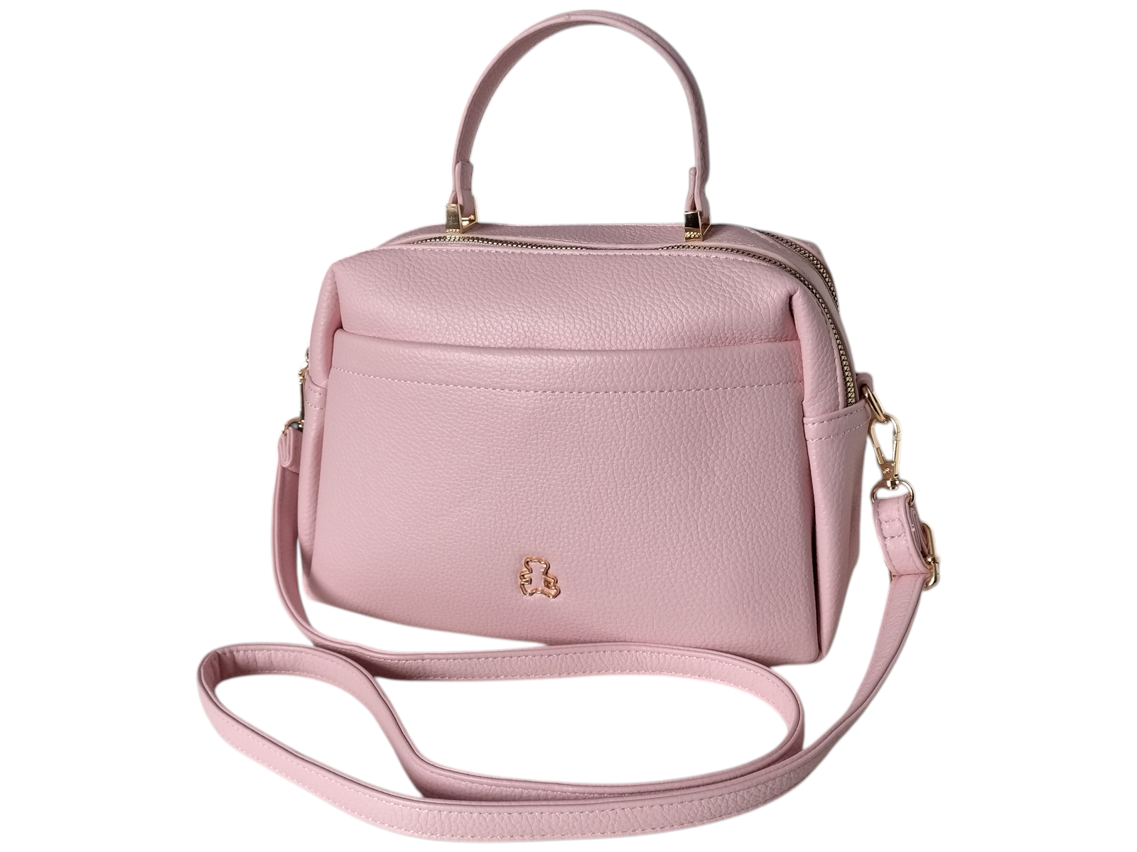 Informacja o Bespieczeństwie: Torebka do użytku codziennego. Nieodpowiednia dla dzieci – ryzyko uduszenia / skaleczenia małymi elementami i paskami. Używać zgodnie z przeznaczeniem. Nie przeciążać. Trzymać z dala od ognia i wysokiej temperatury. Czyszczenie wilgotną miękką ściereczką; nie prać; nie używać rozpuszczalników