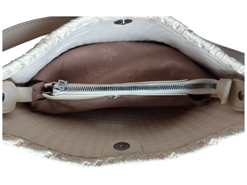 Informacja o Bespieczeństwie: Torebka do użytku codziennego. Nieodpowiednia dla dzieci – ryzyko uduszenia / skaleczenia małymi elementami i paskami. Używać zgodnie z przeznaczeniem. Nie przeciążać. Trzymać z dala od ognia i wysokiej temperatury. Czyszczenie wilgotną miękką ściereczką; nie prać; nie używać rozpuszczalników