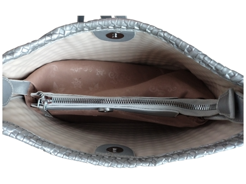 Informacja o Bespieczeństwie: Torebka do użytku codziennego. Nieodpowiednia dla dzieci – ryzyko uduszenia / skaleczenia małymi elementami i paskami. Używać zgodnie z przeznaczeniem. Nie przeciążać. Trzymać z dala od ognia i wysokiej temperatury. Czyszczenie wilgotną miękką ściereczką; nie prać; nie używać rozpuszczalników