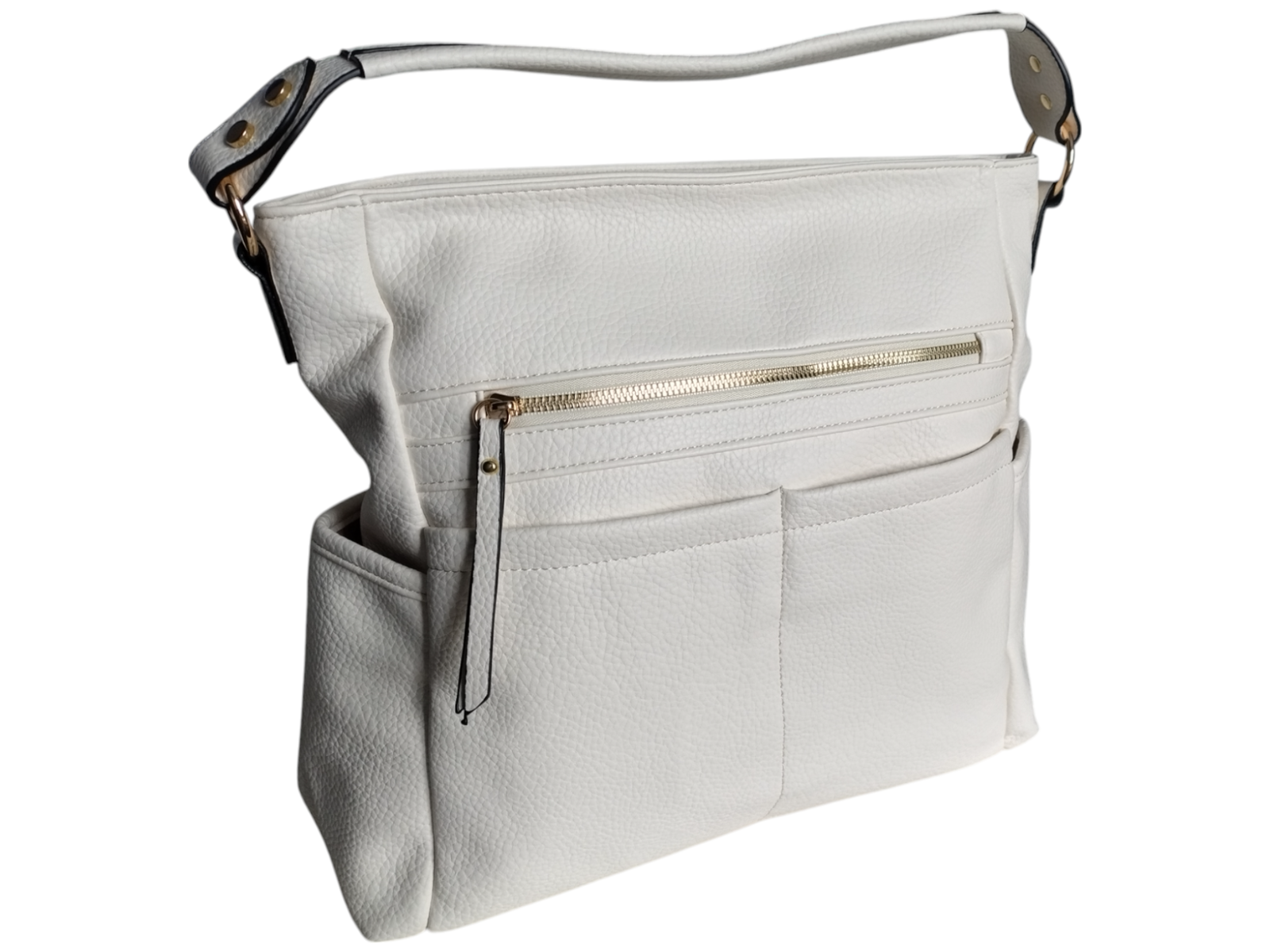 Torebka Damska Shopper z Przegrodą Duża Beżowa Torba na Ramię, Miejski Styl