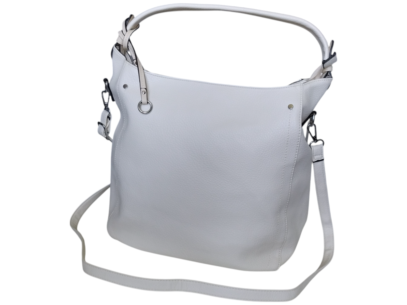 Informacja o Bespieczeństwie: Torebka do użytku codziennego. Nieodpowiednia dla dzieci – ryzyko uduszenia / skaleczenia małymi elementami i paskami. Używać zgodnie z przeznaczeniem. Nie przeciążać. Trzymać z dala od ognia i wysokiej temperatury. Czyszczenie wilgotną miękką ściereczką; nie prać; nie używać rozpuszczalników
