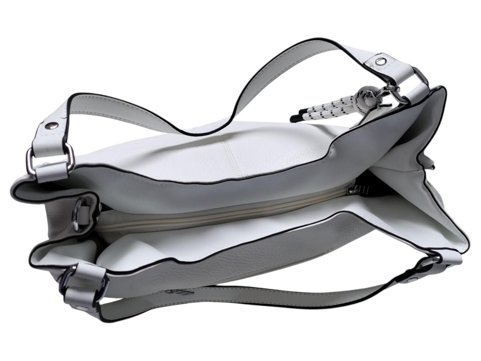 Torebka Damska Shopper z Przegrodą Duża Biała Praktyczna Torba na Ramię