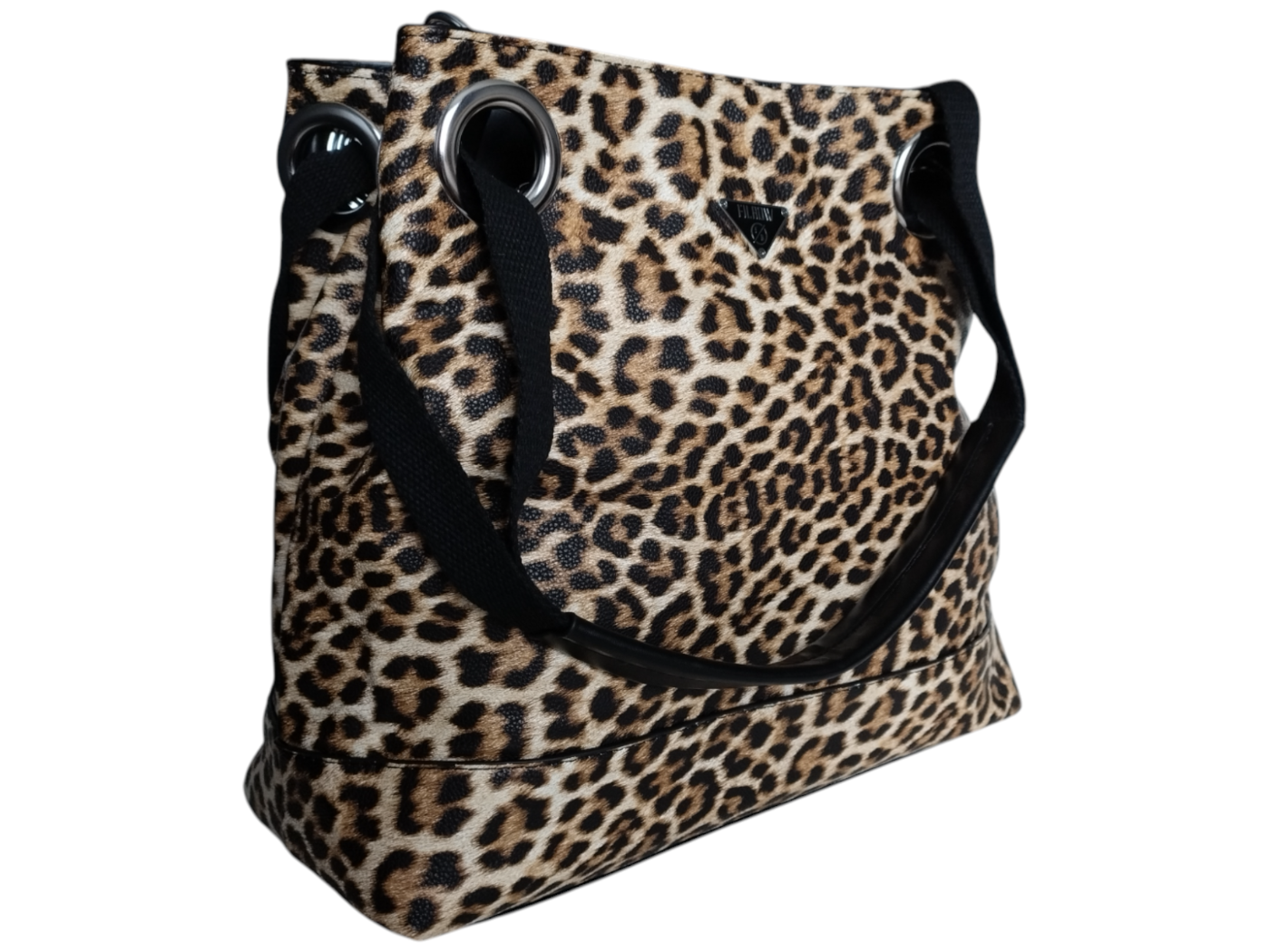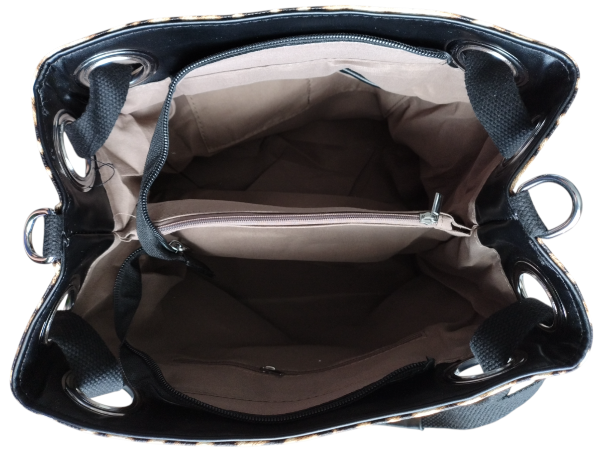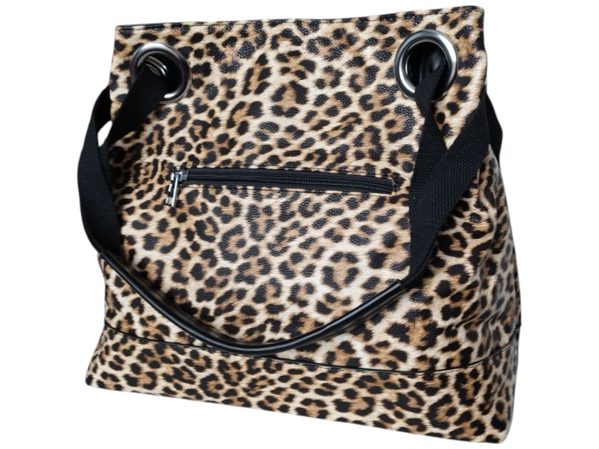 Torebka Damska Shopper z Przegrodą Duża Brązowa Torba na Ramię, Panterka
