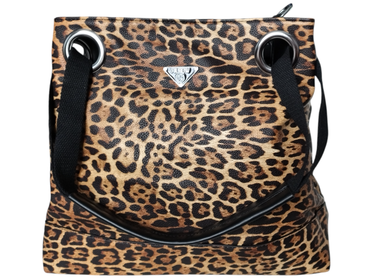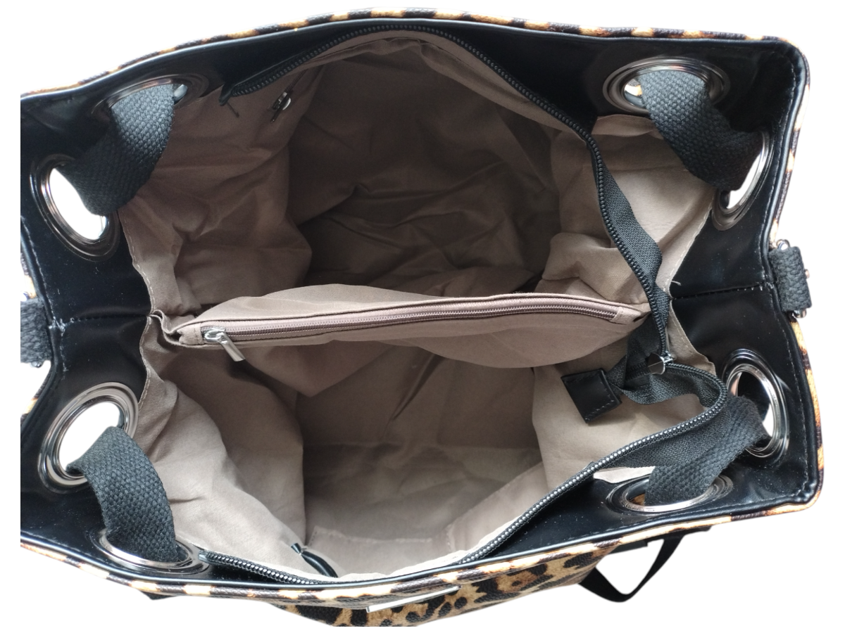 Torebka Damska Shopper z Przegrodą Duża Brązowa Torba na Ramię, Panterka