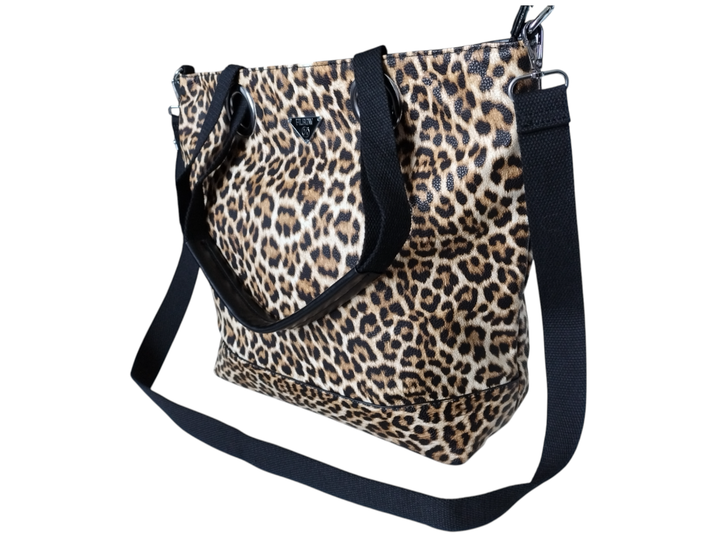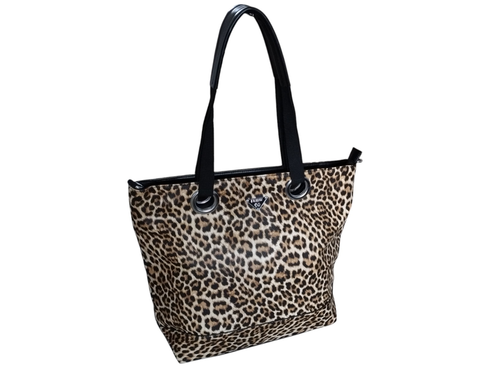 Torebka Damska Shopper z Przegrodą Duża Brązowa Torba na Ramię, Panterka