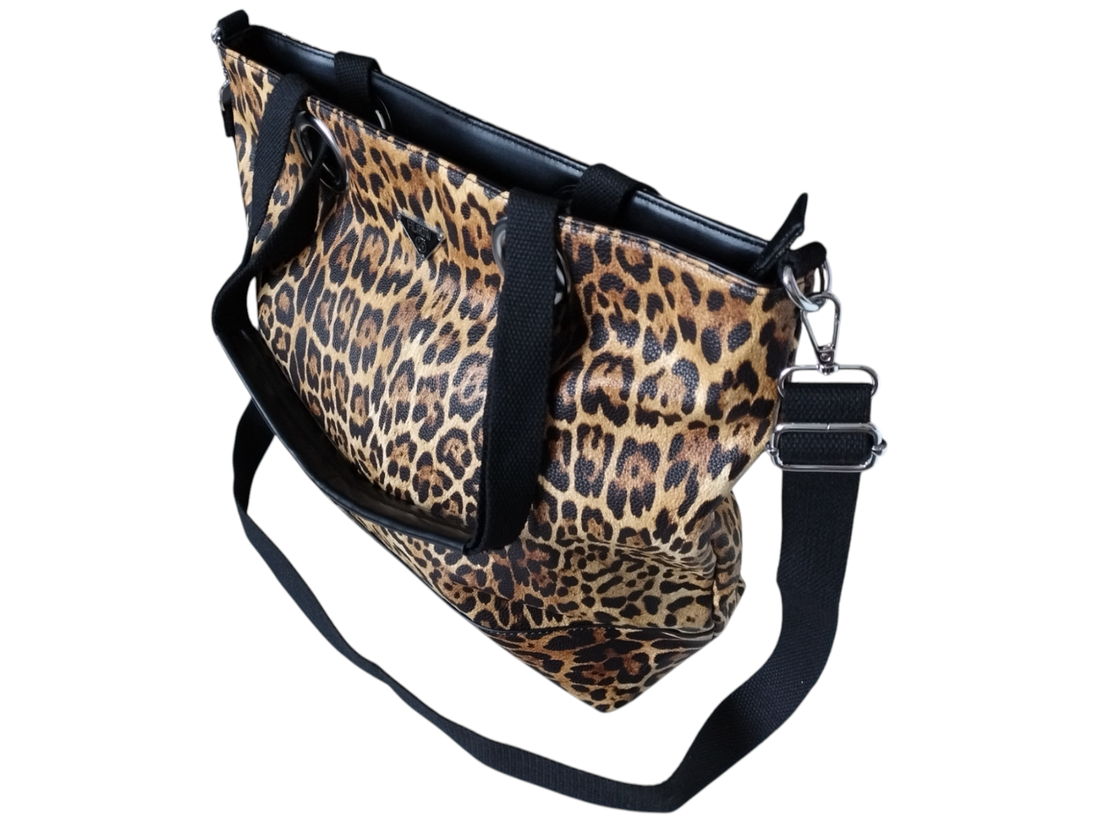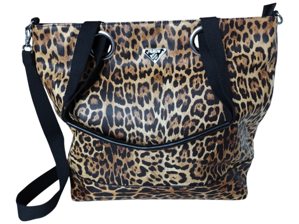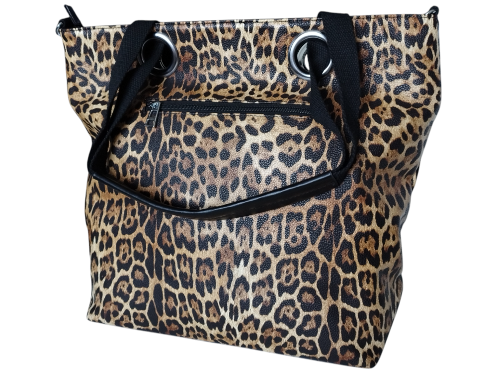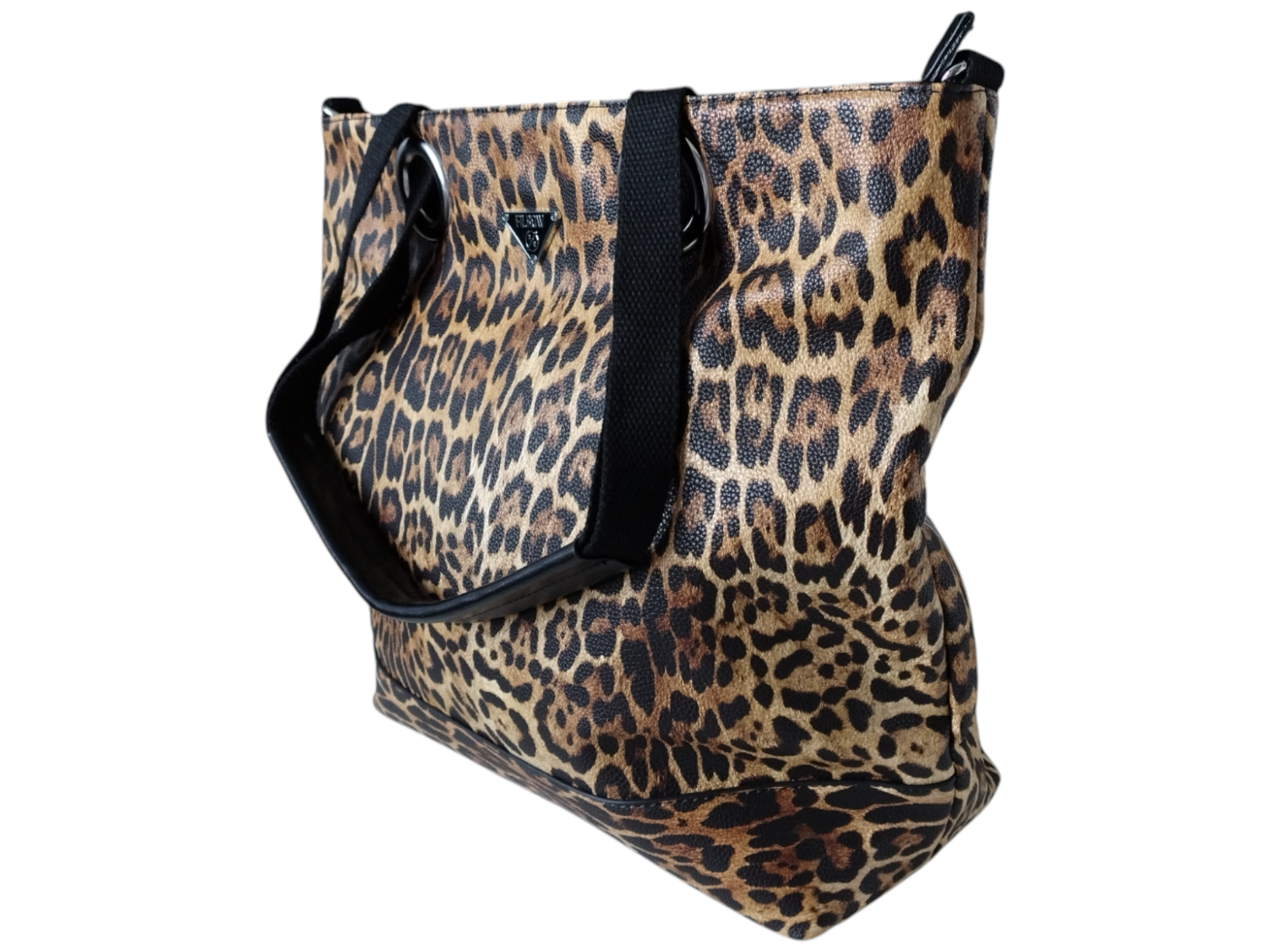 Torebka Damska Shopper z Przegrodą Duża Brązowa Torba na Ramię, Panterka