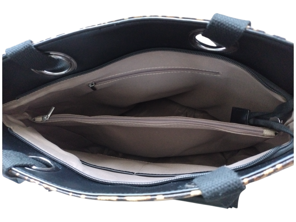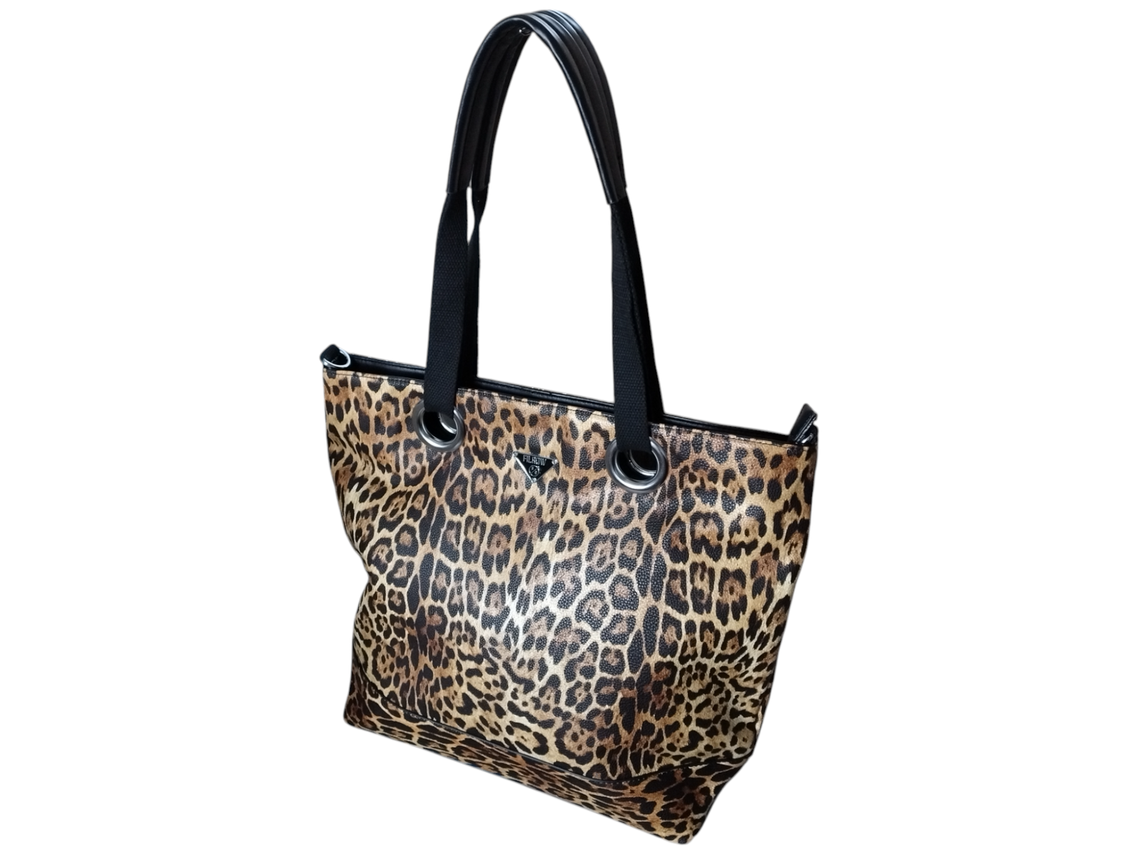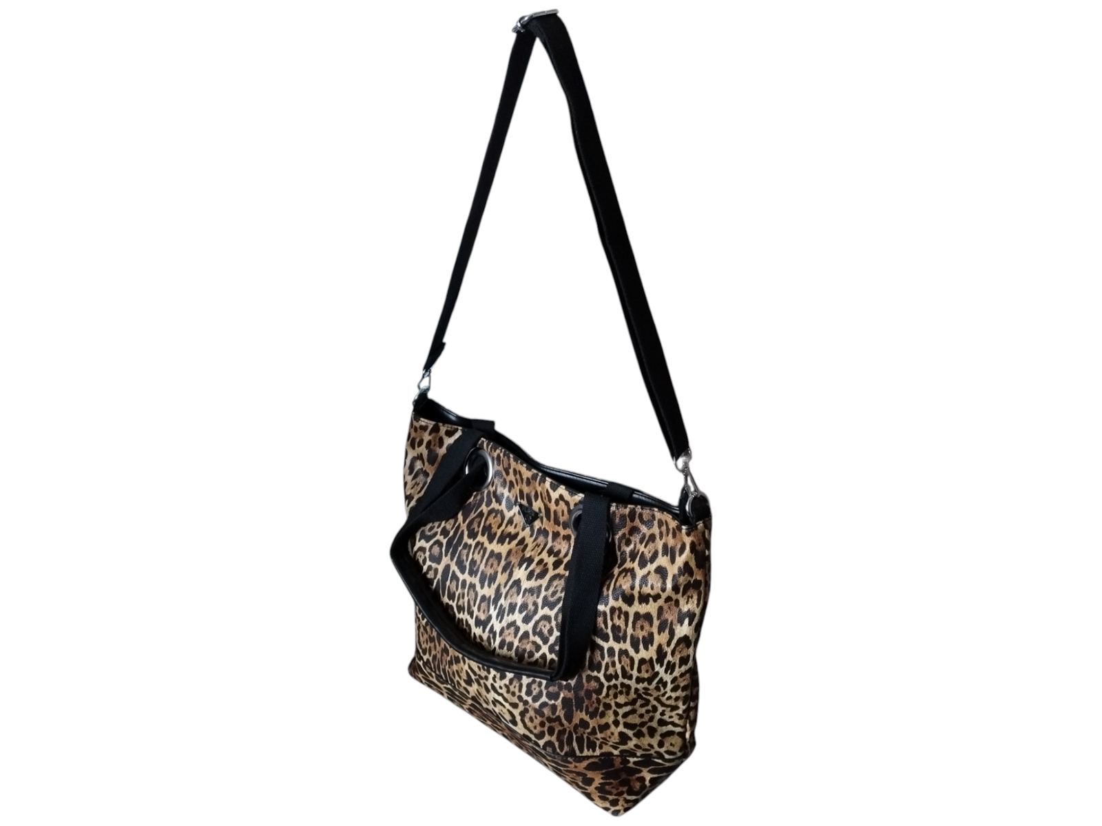 Torebka Damska Shopper z Przegrodą Duża Brązowa Torba na Ramię, Panterka