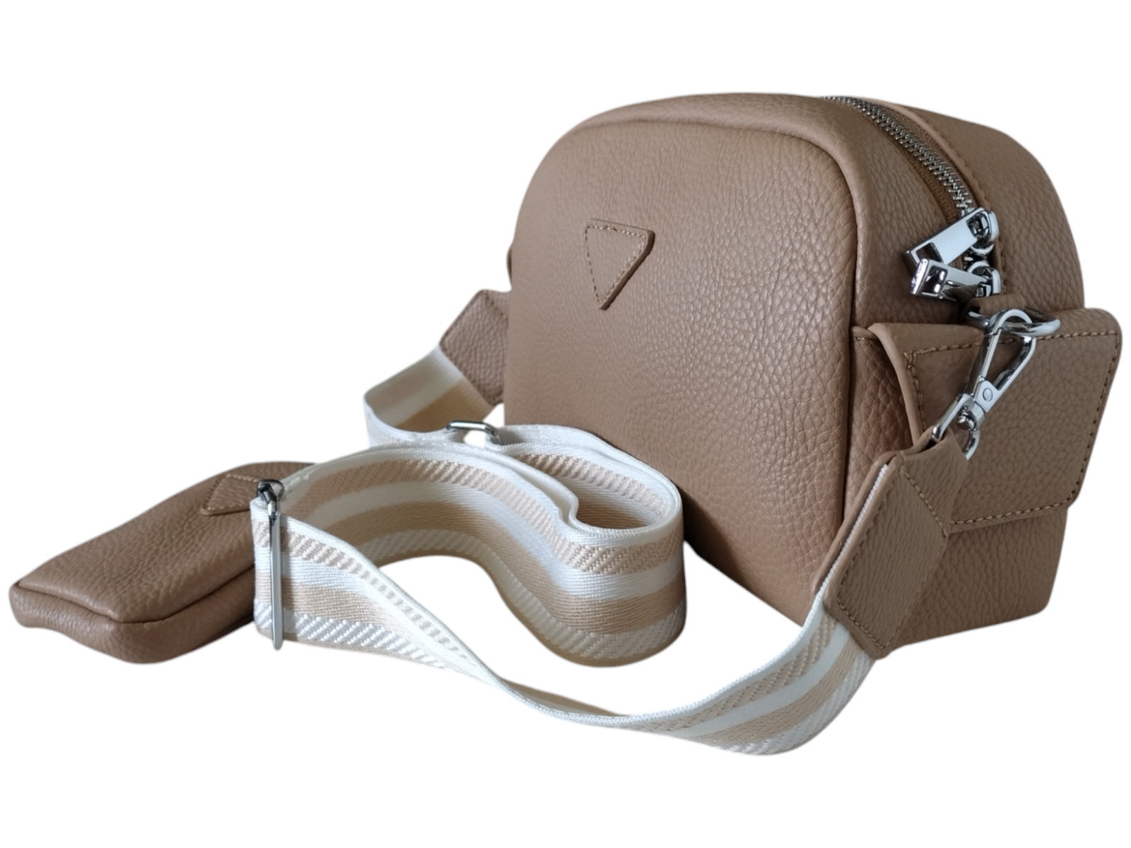 Informacja o Bespieczeństwie: Torebka do użytku codziennego. Nieodpowiednia dla dzieci – ryzyko uduszenia / skaleczenia małymi elementami i paskami. Używać zgodnie z przeznaczeniem. Nie przeciążać. Trzymać z dala od ognia i wysokiej temperatury. Czyszczenie wilgotną miękką ściereczką; nie prać; nie używać rozpuszczalników
