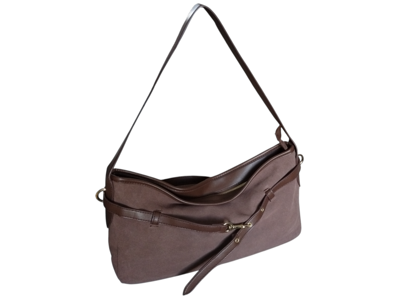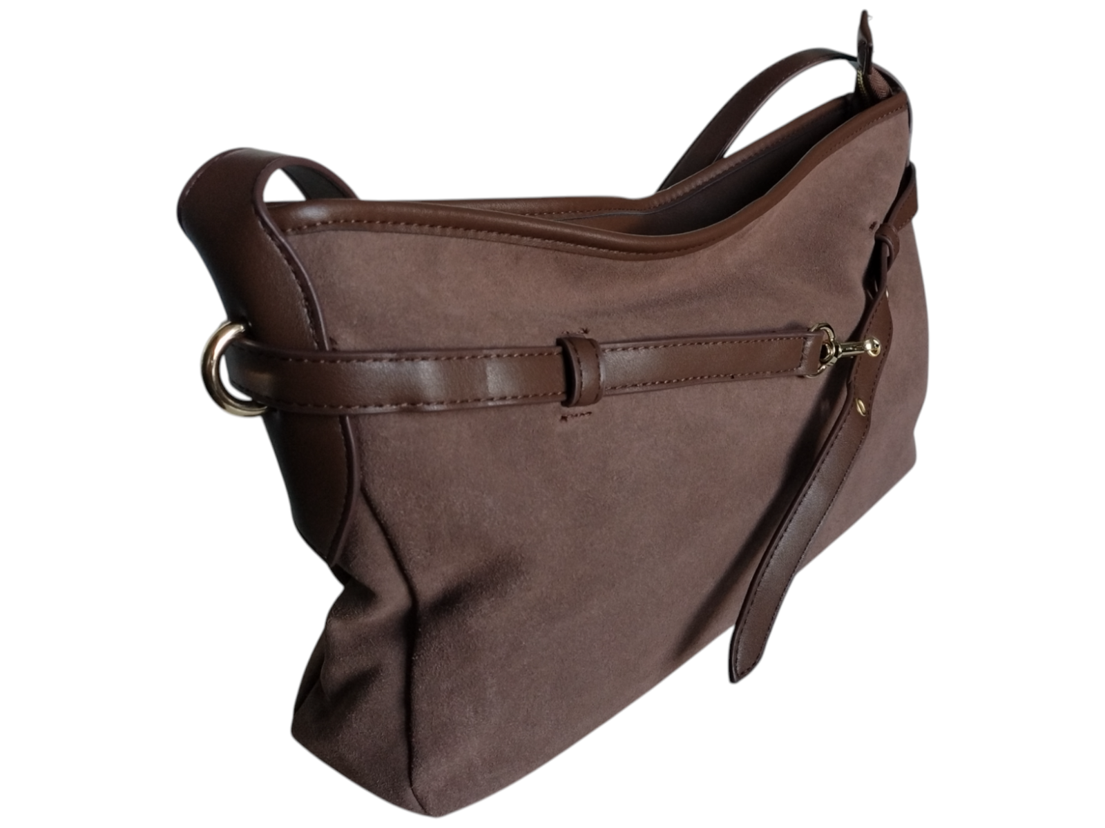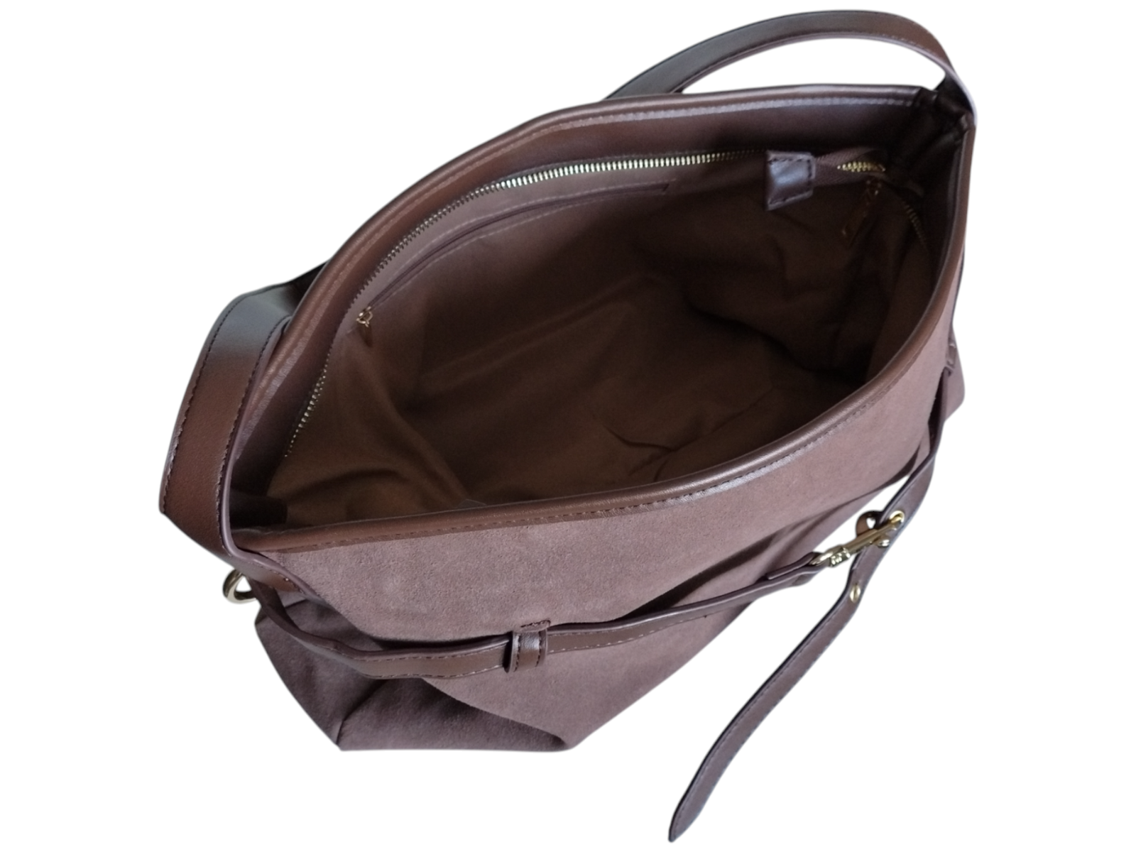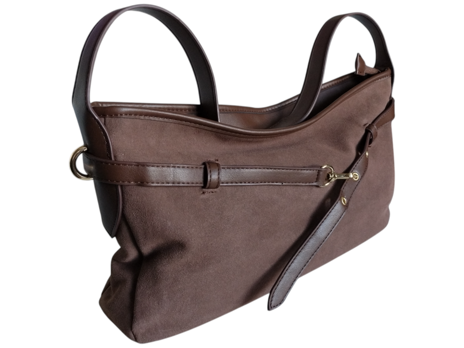 Torebka Damska Zamszowa, Modna Miejska Torba Shopper na Ramię, Brązowy